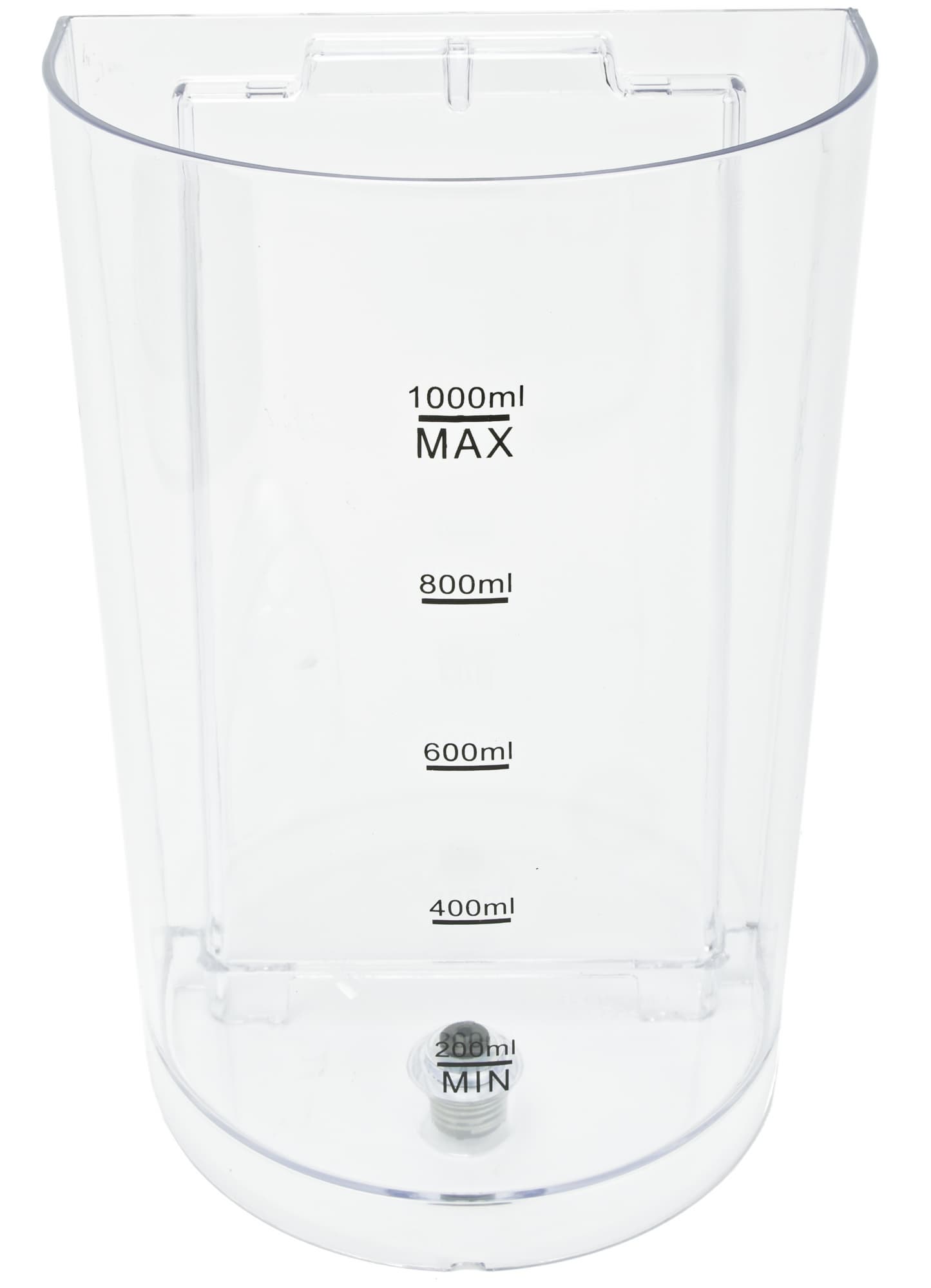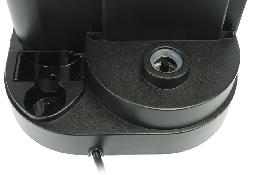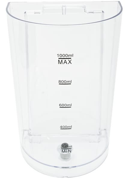 Клапан подачи воды находится на дне бака. Если бак поднять — клапан закроется и вода выливаться не будет. Крепление бака к корпусу кофеварки осуществляется с помощью пары направляющих.