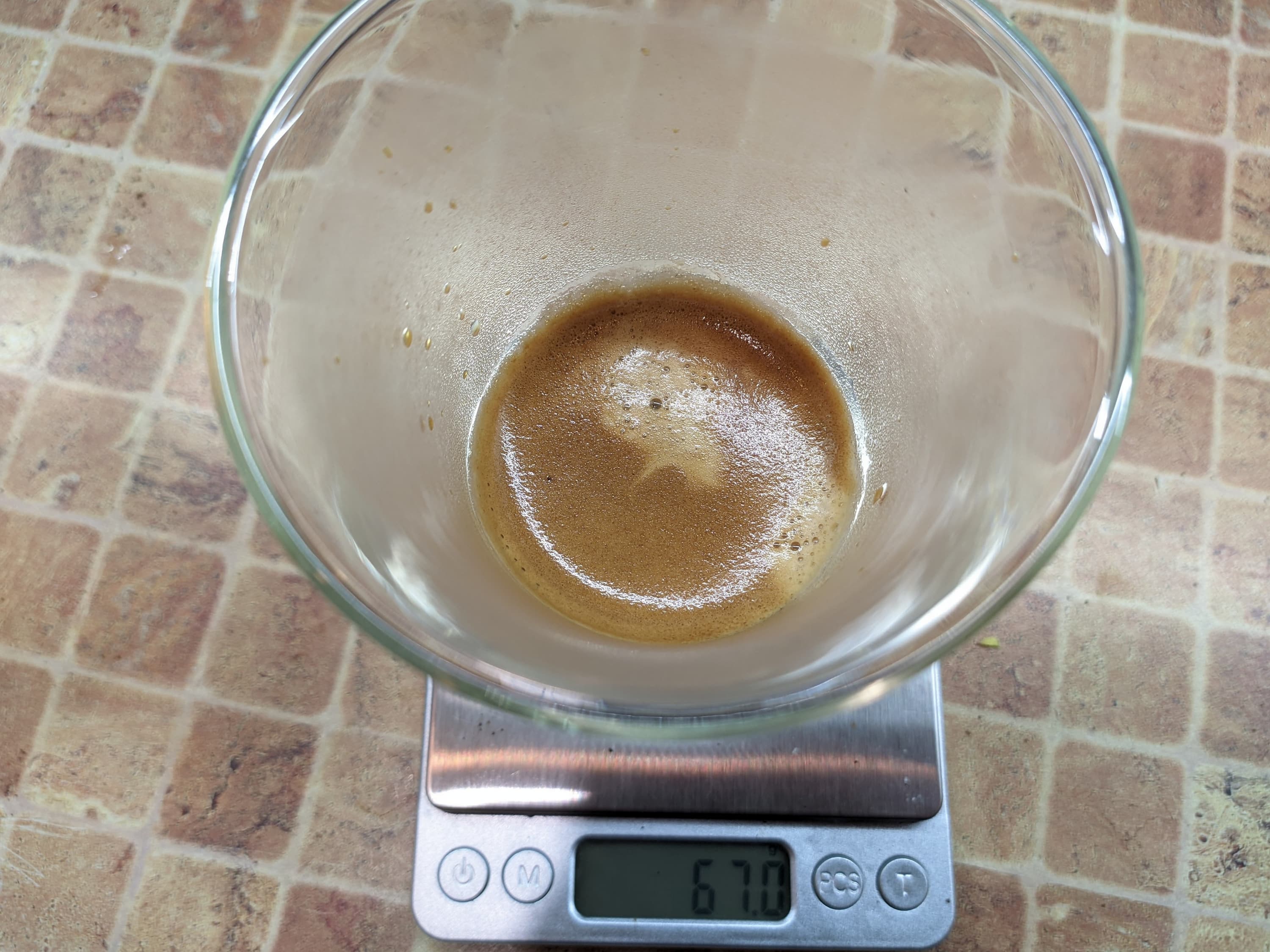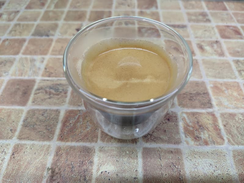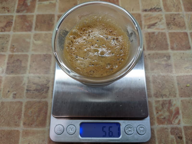 После уменьшения помола нам удалось добиться более адекватных результатов, однако готовить одинарный эспрессо с помощью бюджетных кофеварок и пластикового темпера сложно — мы решили перейти к приготовлению двойной порции (там влияние всевозможных погрешностей окажется ниже).