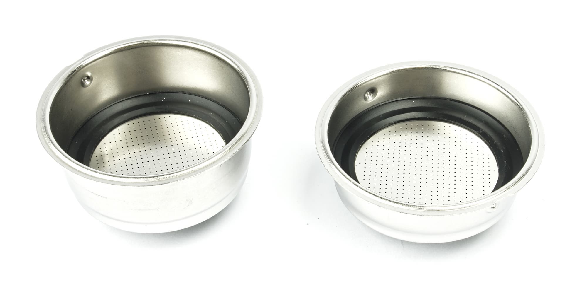 Сами фильтры имеют двойное дно (с внутренней стороны мы видим множество мелких отверстий, снизу — одну сеточку). Напомним, в фильтры с двойным дном не стоит закладывать кофе слишком мелкого помола: если он окажется между двойными стенками, извлечь его будет непросто.
