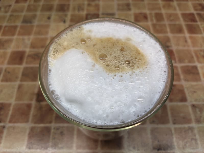 Как выглядит молочная пена? Крупных пузырьков тут оказалось довольно много, сама пенка при этом была пышной и устойчивой.