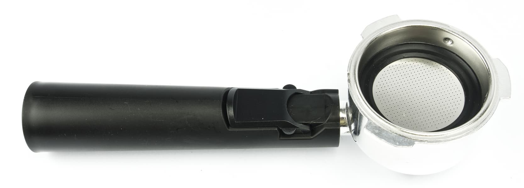 В комплекте обнаружилось два фильтра (на 1 и 2 порции эспрессо соответственно), которые фиксируются внутри рожка с помощью небольшого выступа: фильтр устанавливается в единственно верном положении, после чего поворачивается относительно рожка и таким образом фиксируется на своем месте. Помимо этого у рожка предусмотрен пластиковый локер, с помощью которого можно придержать фильтр, вытряхивая из него отработанный кофе.