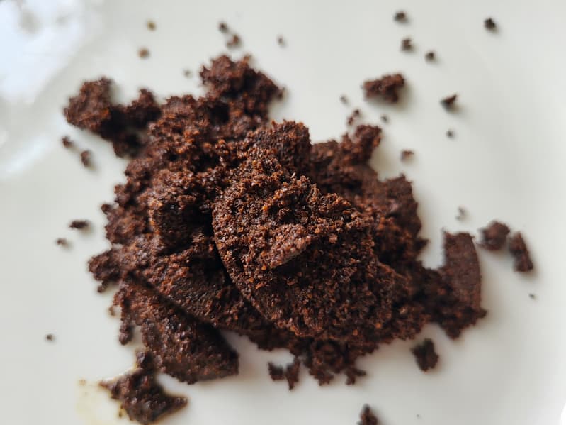Мы изучили кофейную таблетку, оставшуюся в фильтре. Таблетка оказалась довольно плотной и относительно сухой.