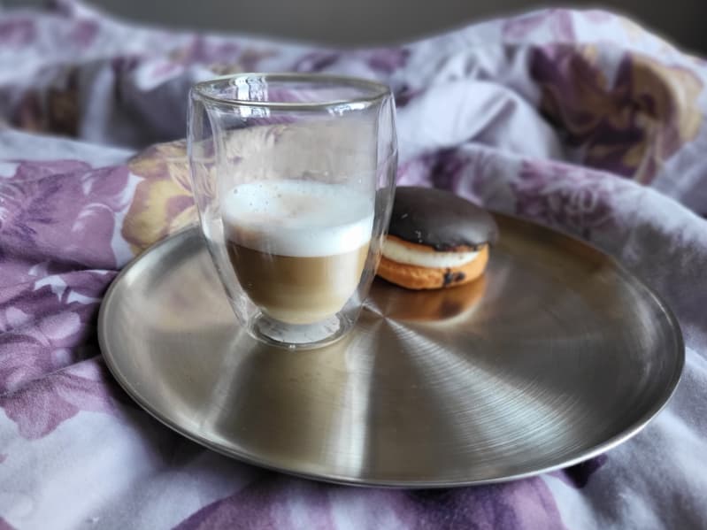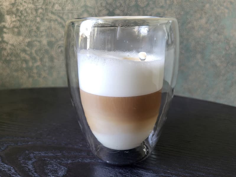 Мы не любители этого вида кофе, поэтому наше мнение очень субъективно, но предполагаем, что такой латте вряд ли пойдет в качестве вечернего кофе: получилось маловато молока.