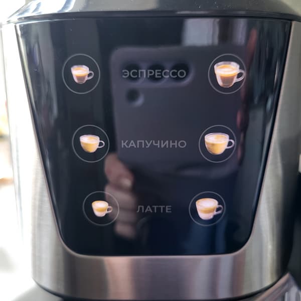 У устройства отсутствует функция блокировки панели управления: кофеварка активируется при легком касании дисплея.