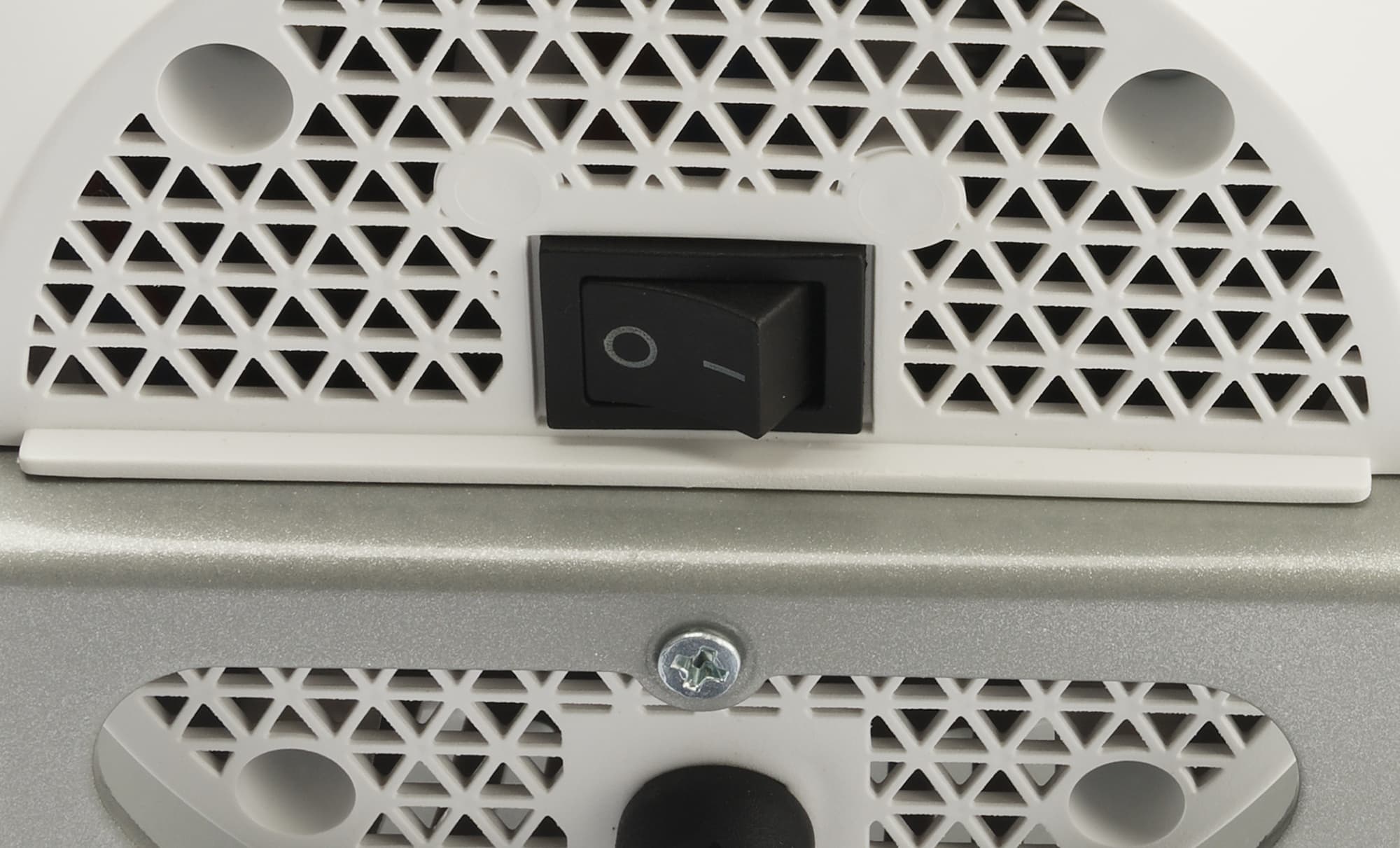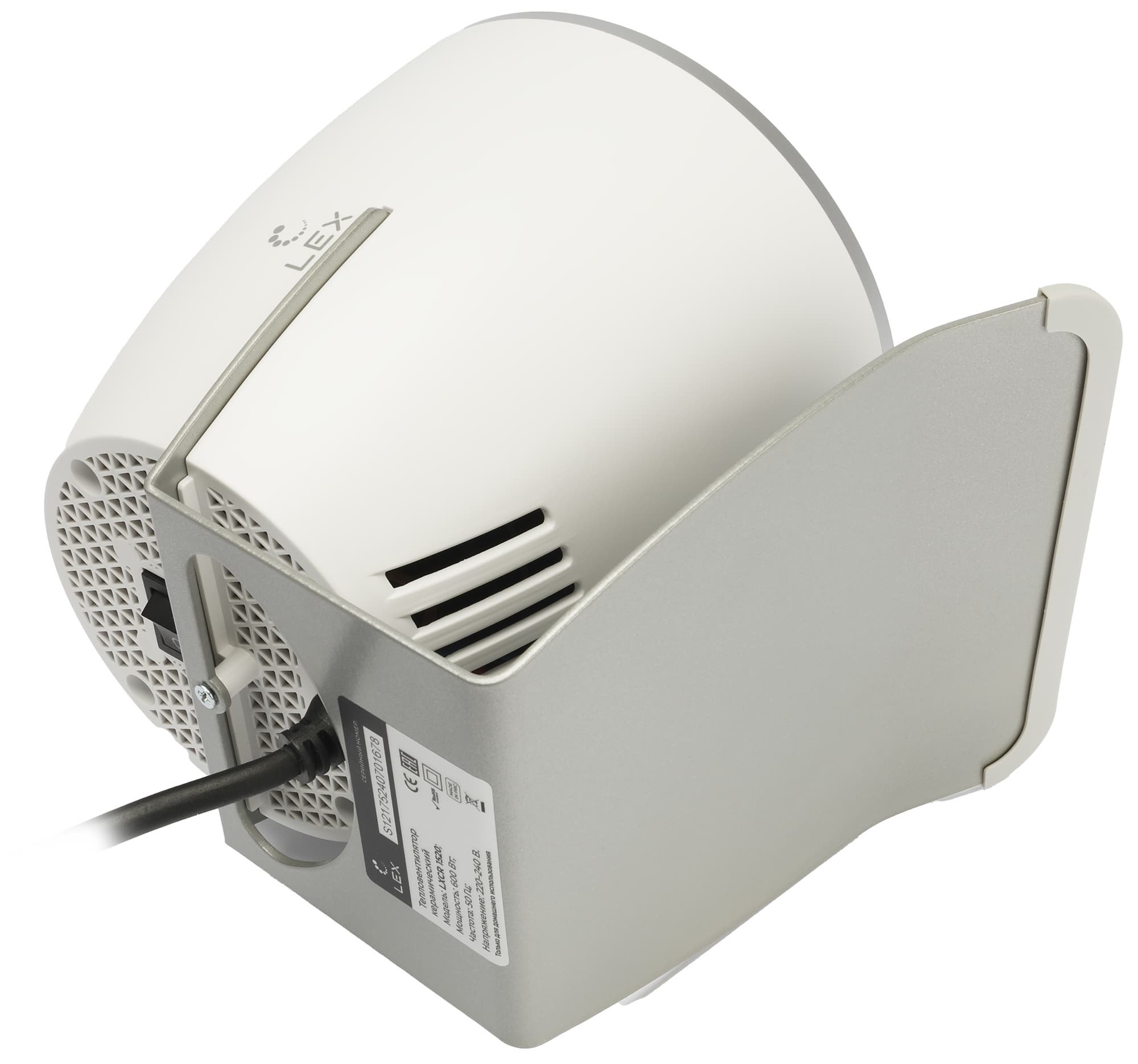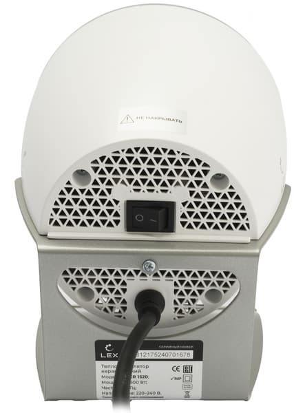 Подставка-основание у тепловентилятора Lex металлическая (судя по всему, стальная). На передней части находится резиновая насадка, гасящая вибрации и препятствующая скольжению прибора. Отметим, что насадка легко снимается, что хорошо (ее можно вымыть и высушить отдельно от прибора).