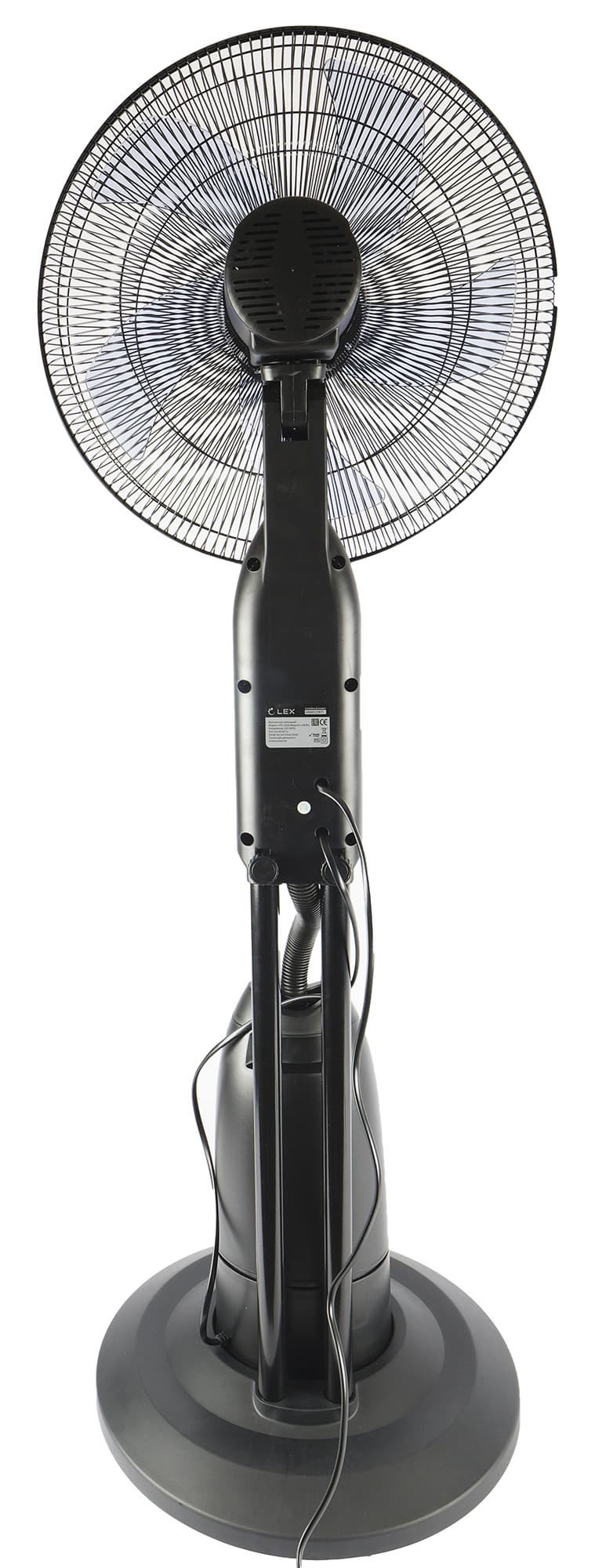 На боковых гранях приведены технические характеристики и основные особенности модели: диаметр лопастей Lex LXFC 8350 составляет 40 сантиметров, мощность — 90 Вт, у вентилятора три скорости вращения, есть механизм автоматического поворота корпуса, защита от перегрева и дистанционное управление, и, конечно же, режим увлажнения.