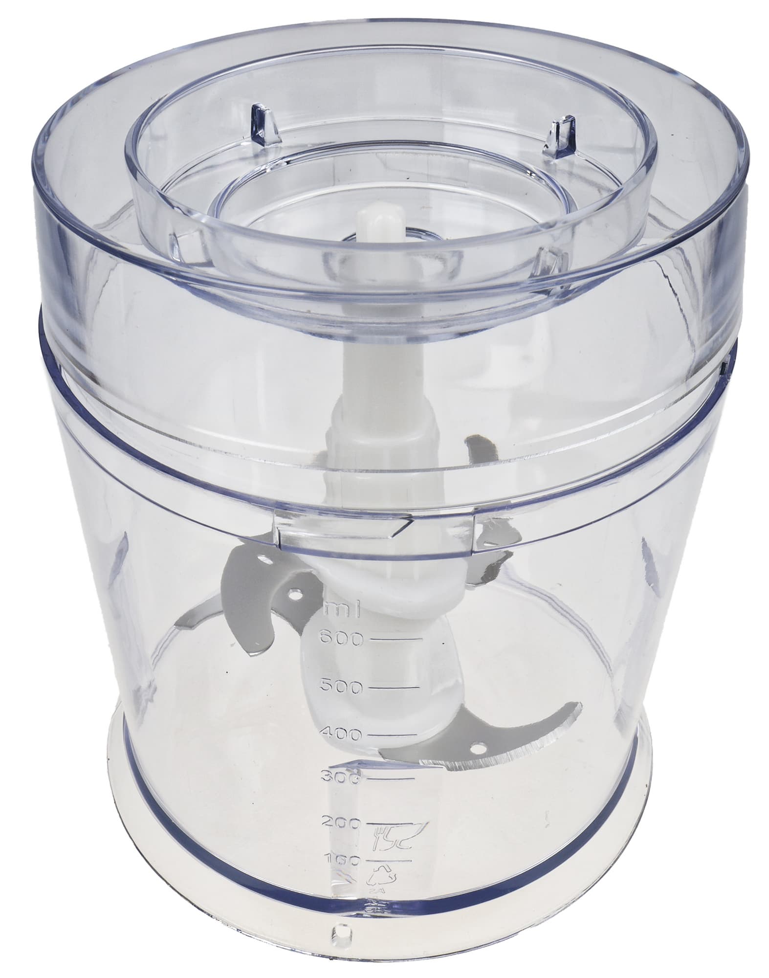 На чаше нанесена градуировка — от 100 до 600 мл с шагом в 100 мл. Диаметр чаши — 11,5 см.