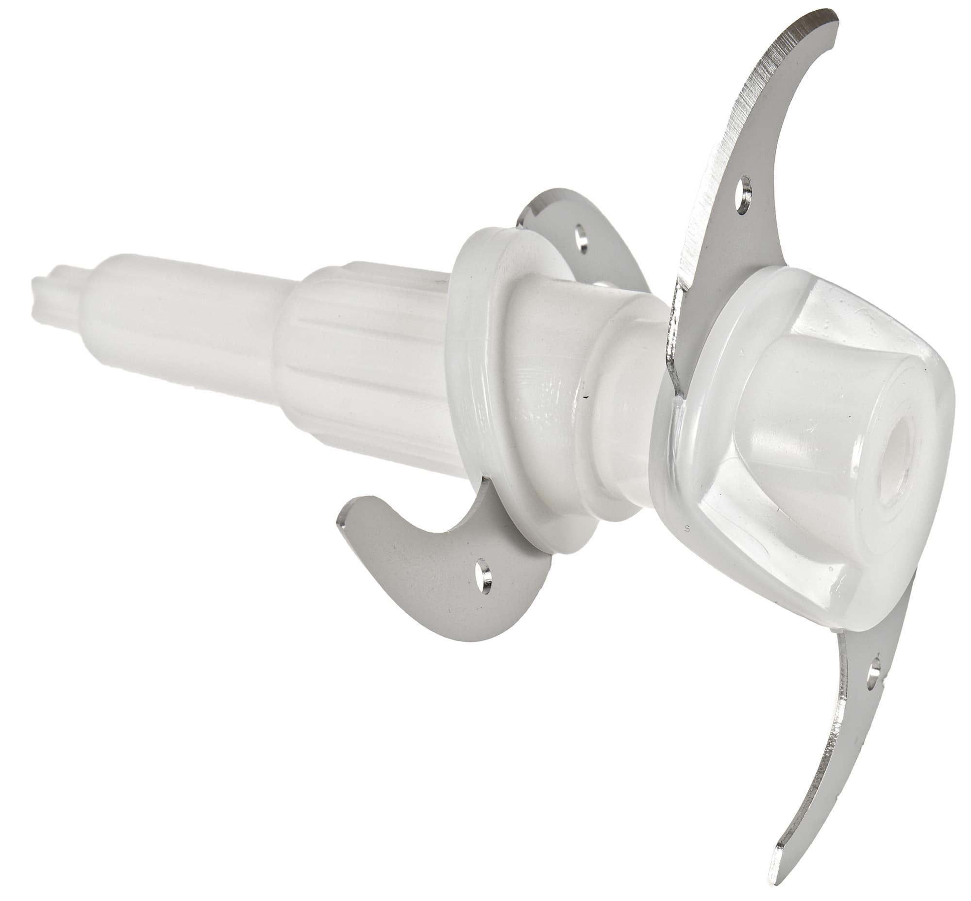 Ножевой блок состоит из двух пар плоских ножей, расположенных на двух уровнях. Материал крепления ножей — пластик. Плоские ножи сделаны из нержавеющей стали. Заточка присутствует с одной (рабочей) стороны. Выглядит все довольно надежно и основательно, заточку у ножей мы субъективно оцениваем как весьма неплохую.
