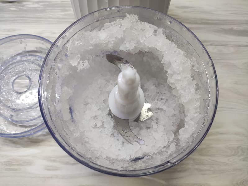 Усложним задачу и добавим еще примерно такой же объем льда. Результат — снова равномерная крошка без вкраплений крупных частиц.