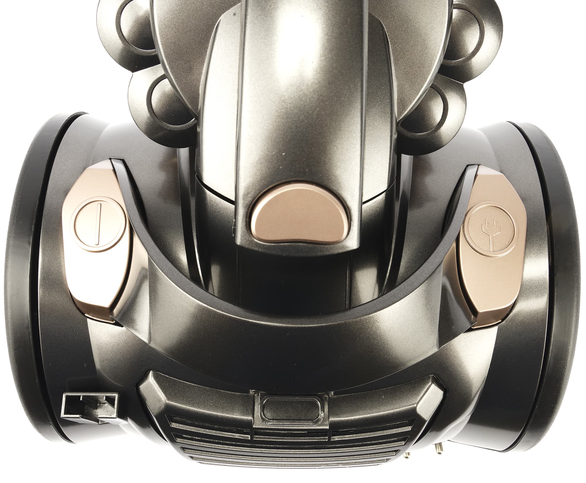 Цветовую гамму производитель назвал «антрацит и перламутровый песок». Звучит дорого и богато. Каких-либо «украшательств» при этом тут не много. Внимание привлекает, разве что, форма пылесборника, напоминающая сопла ракетного двигателя.