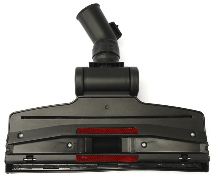 При уборке насадка опирается на два ролика в пяточной части, а скольжение по напольному покрытию облегчают две красные велюровые накладки.