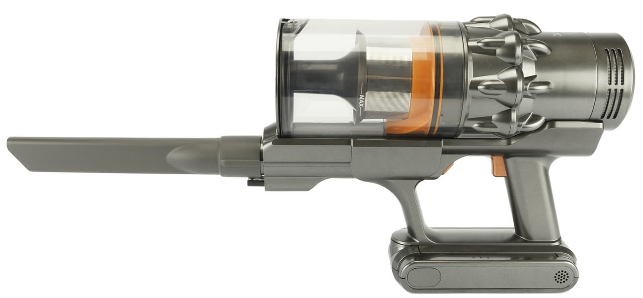 В конфигурации для сухой уборки пола (основной блок, аккумулятор, удлинительная трубка и насадка для пола) пылесос весит 2855 г. Минимальный вес конструкции (в конфигурации для ручной уборки) составляет 1780 г.