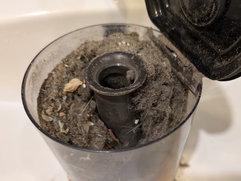 А вот грязь, скопившуюся вокруг стальной сетки, придется удалять вручную, извлекая циклонный элемент.