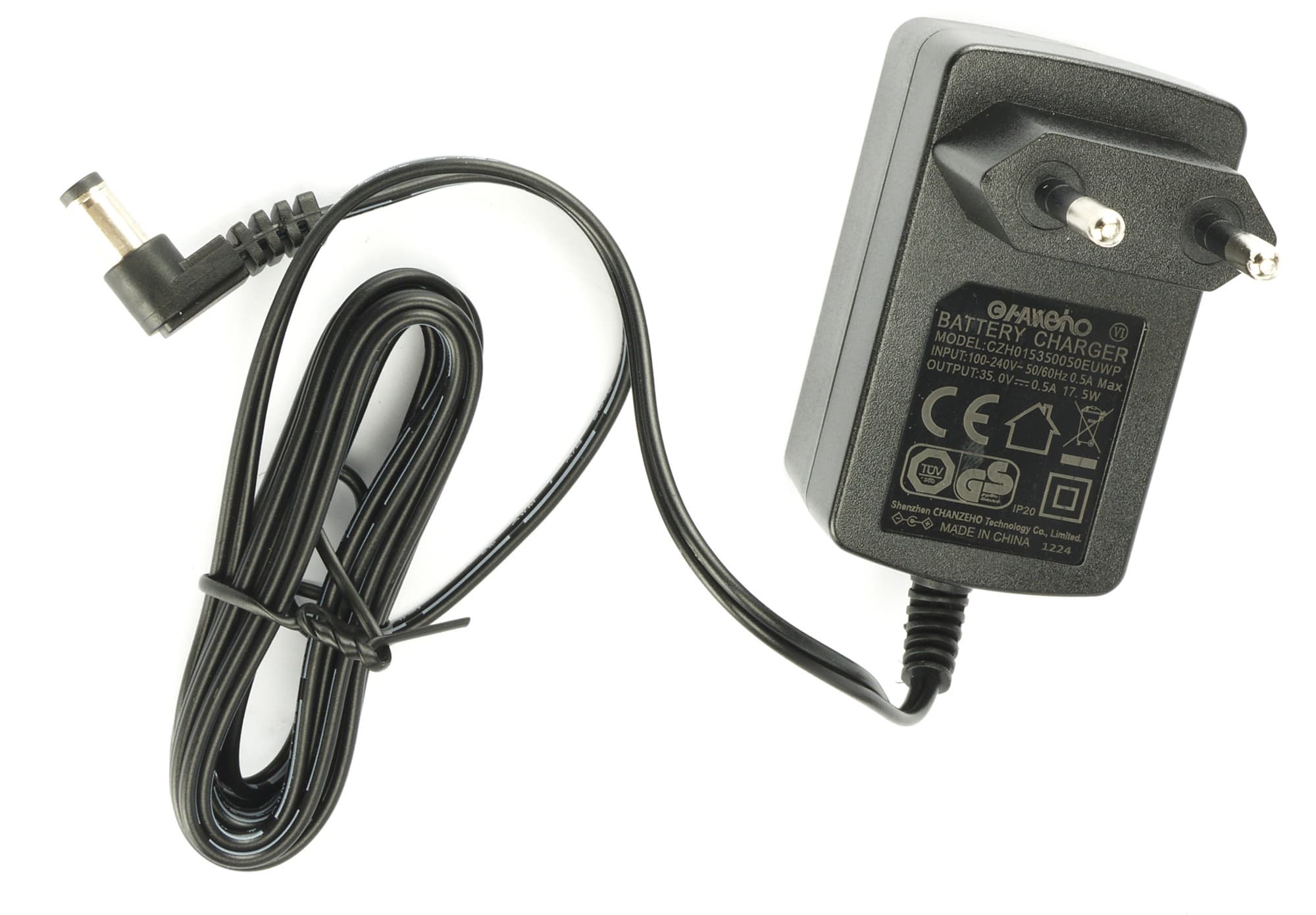 Входящий в комплект адаптер обеспечивает пылесос постоянным током (35 В, 0,5 А).