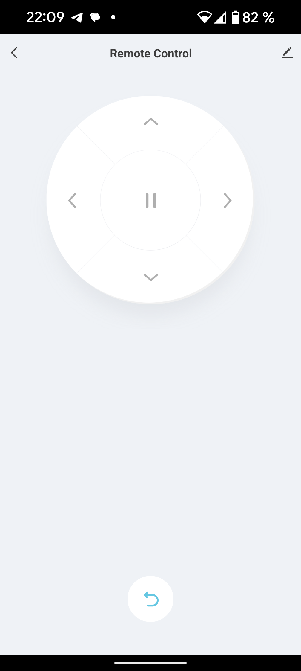 Ссылка «Remote Control» ведет на экран ручной навигации. Воспользовавшись лаконичным интерфейсом, мы можем направить движение робота в выбранном направлении, приостановить или возобновить уборку.