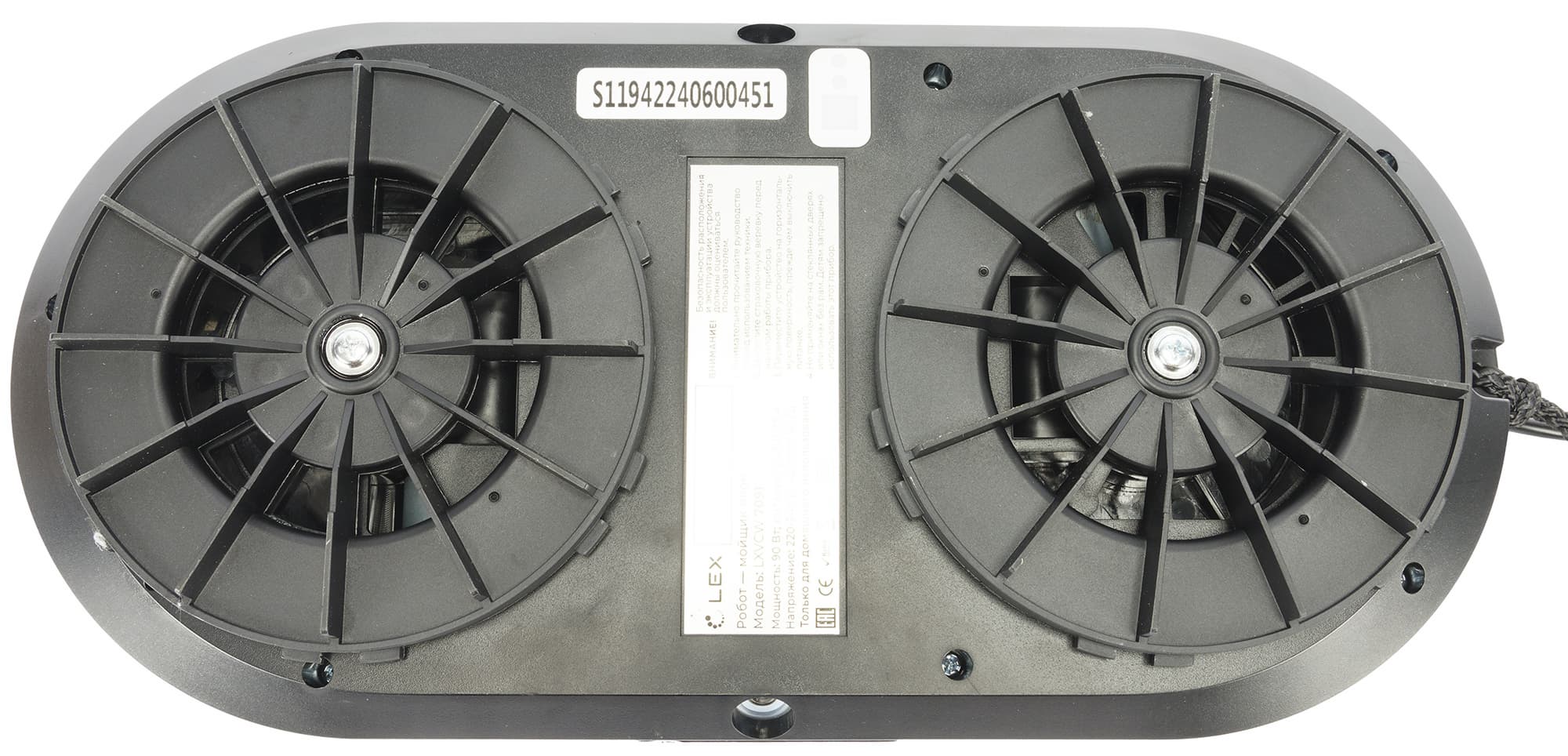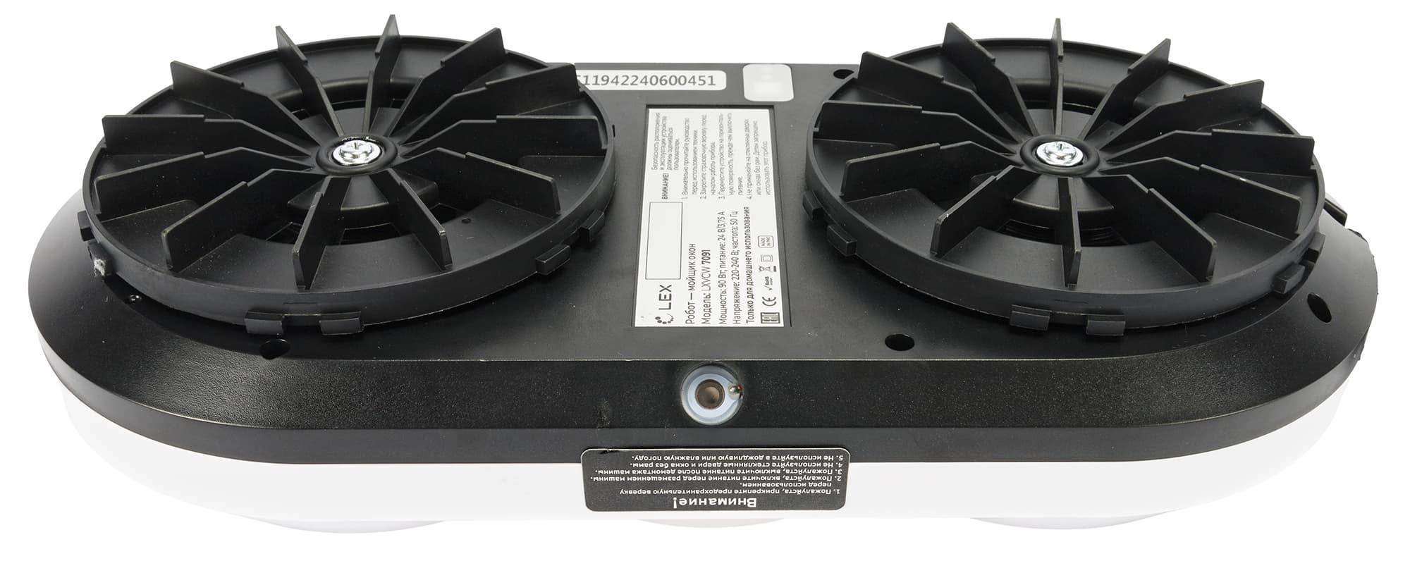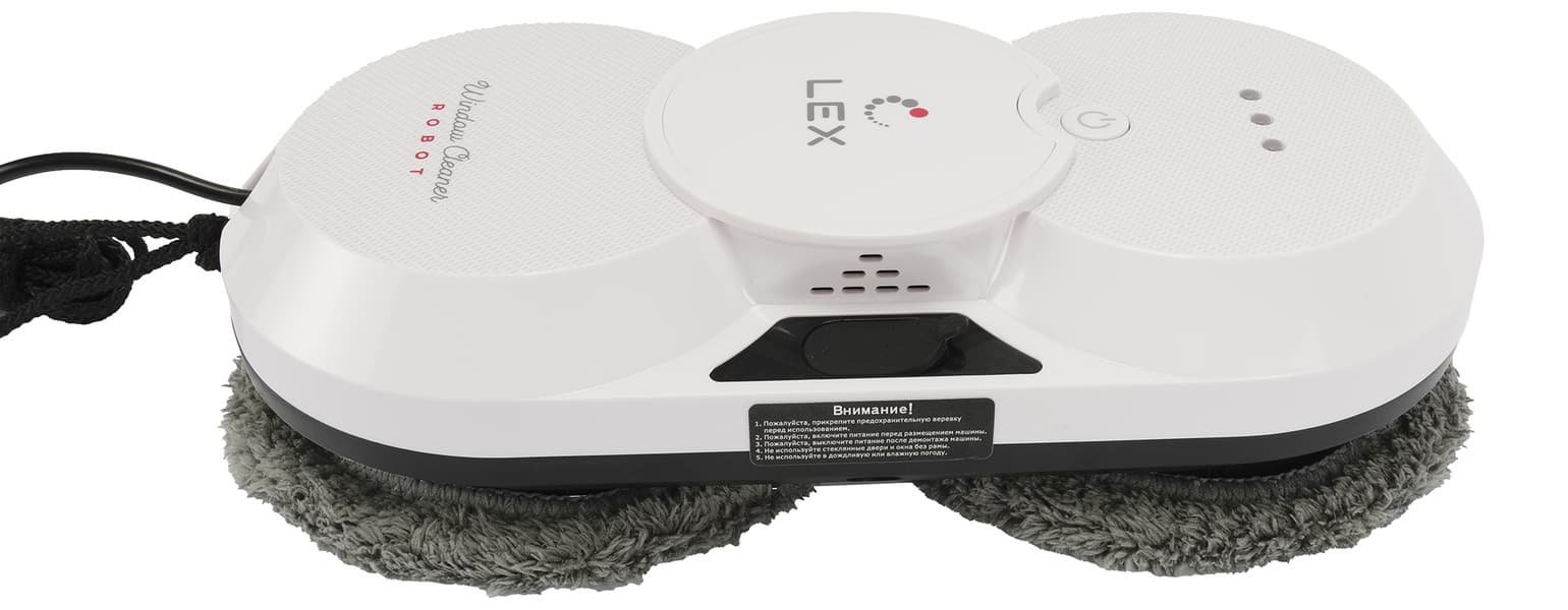 Перед нами — классический роторный робот для мытья стекол. Корпус Lex LXVCW 7091 выполнен из белого гладкого пластика и близок по форме к овалу.