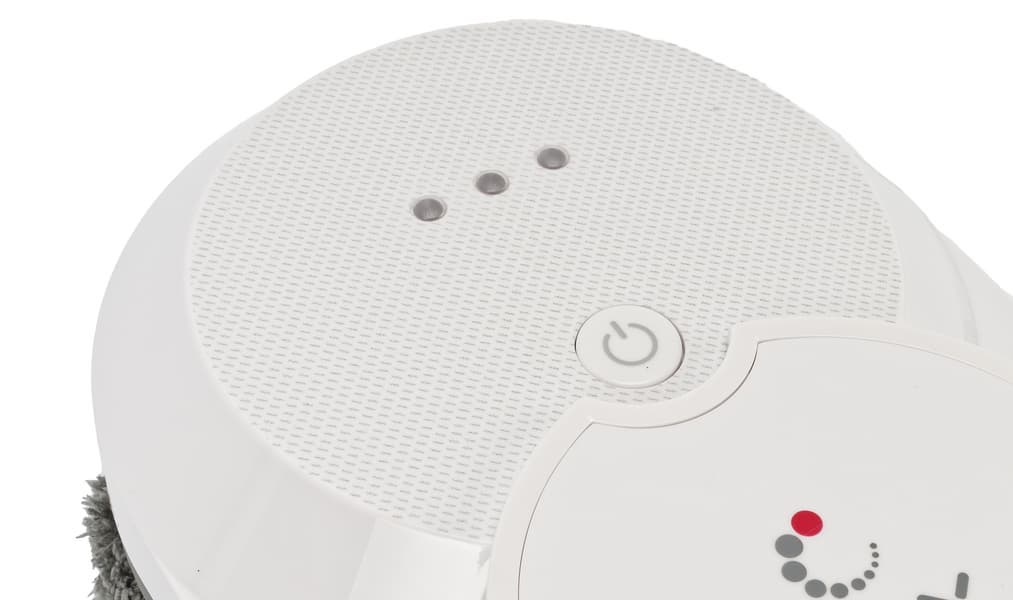 Робот поддерживает как сухую, так и влажную уборку. Для подачи жидкости на стекло служат круглые форсунки на обоих боках корпуса.