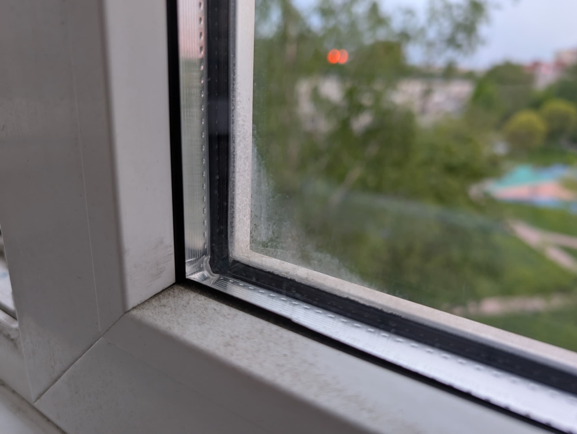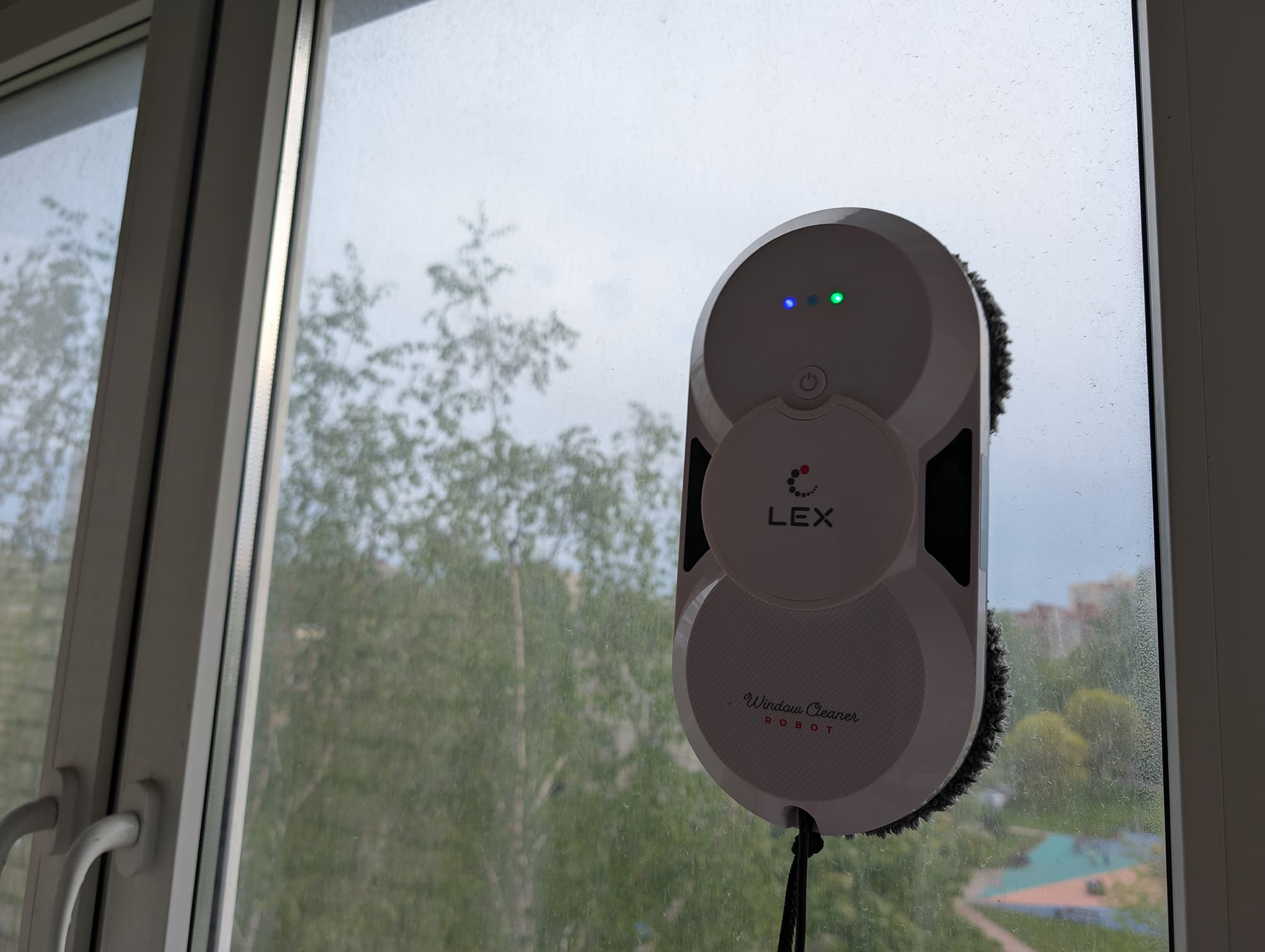 Хотя основное предназначение робота — регулярное протирание сравнительно чистых стекол, нам было интересно, как он справится с застарелыми загрязнениями. Для этого мы мы решили протестировать Lex LXVCW 7091 на остекленном балконе, стеклопакеты на котором не мылись полгода — с прошлой осени. Состояние стекол можно оценить на фото.