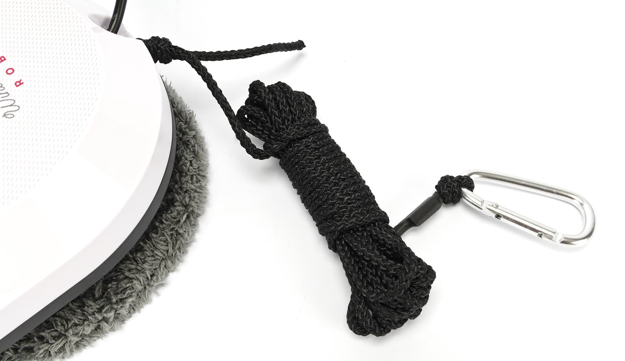 Страховочный шнур прикрепляют одним концом к роботу, а другим — к любому тяжелому предмету внутри помещения, оставив достаточно длины для свободной работы и перемещения устройства. Сделать это можно с помощью карабина либо надежного узла.