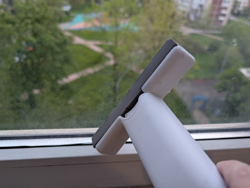 С помощью Lex LXVCW 7091 можно мыть не только стекла. Мы попробовали использовать его для мытья дверей стандартного шкафа-купе из Ikea, которые сделаны из зеркал и алюминиевых рамок-разделителей примерно миллиметровой высоты. Такие двери постоянно покрываются отпечатками пальцев, и мы решили попробовать избавиться от них с помощью тестируемого прибора.