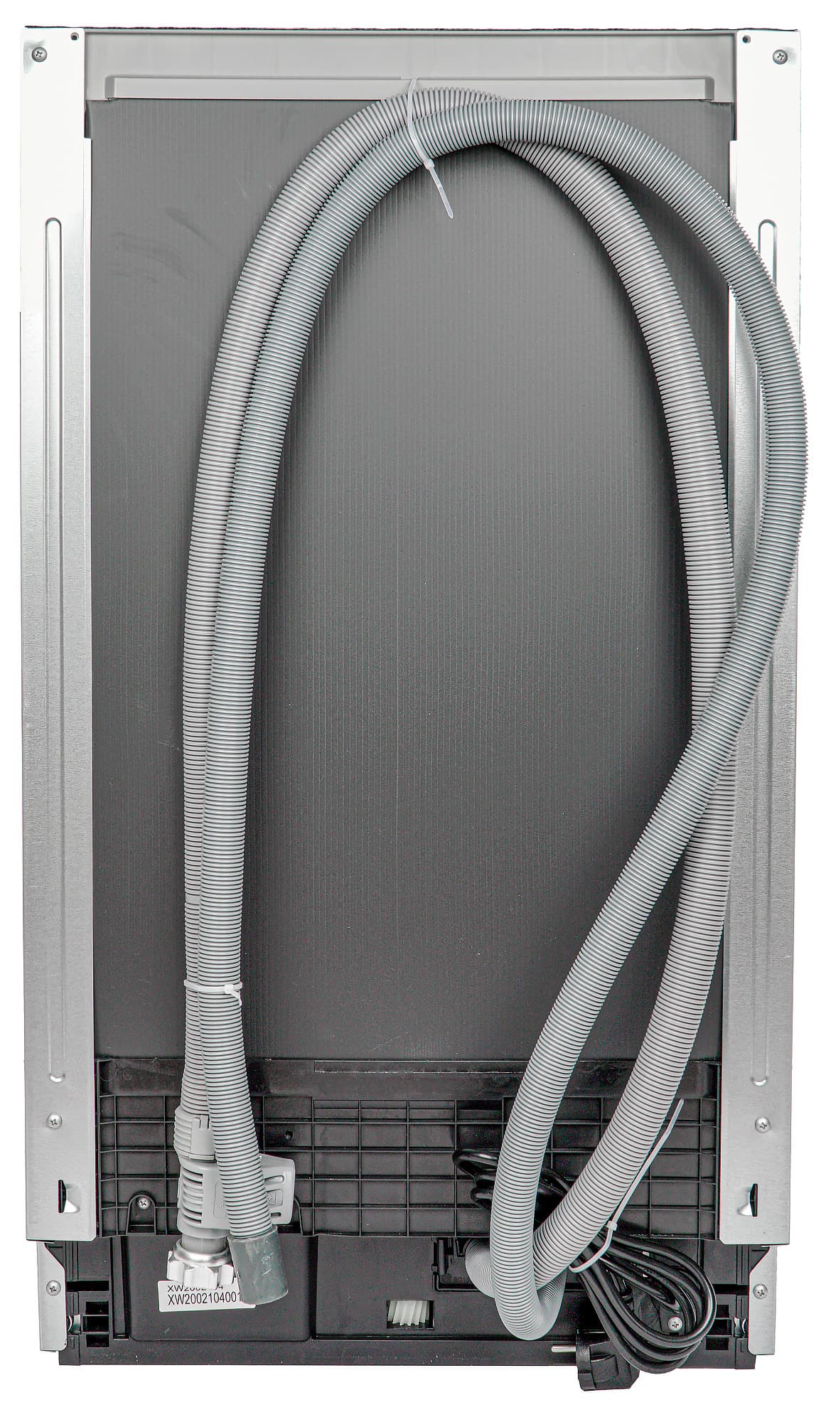 Перед нами — типичный представитель полновстраиваемых ПММ: никаких дизайнерских изысков на корпусе прибора нет. К чему они, если посудомойку полностью скрывает кухонная мебель, а лицевая панель снаружи закрыта фасадом?