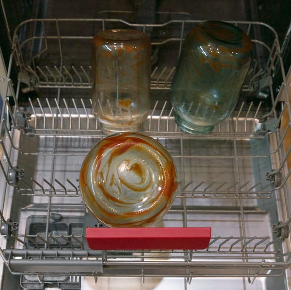 Через положенное время открыли посудомойку и убедились, что от засохшего кетчупа не осталось и следа. Банки сухие и сияющие чистотой.