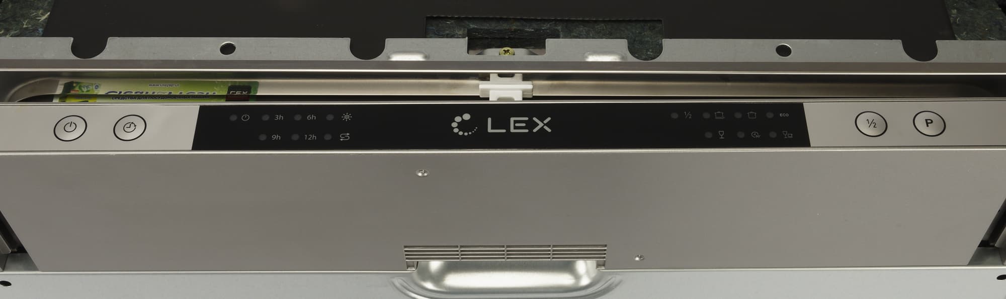 Полноразмерная Lex PM 6063 B, предназначенная для полной встройки, оснащена 6 программами, функцией отложенного старта и возможностью половинной загрузки — собственно, стандартным минимумом для современной посудомоечной машины.