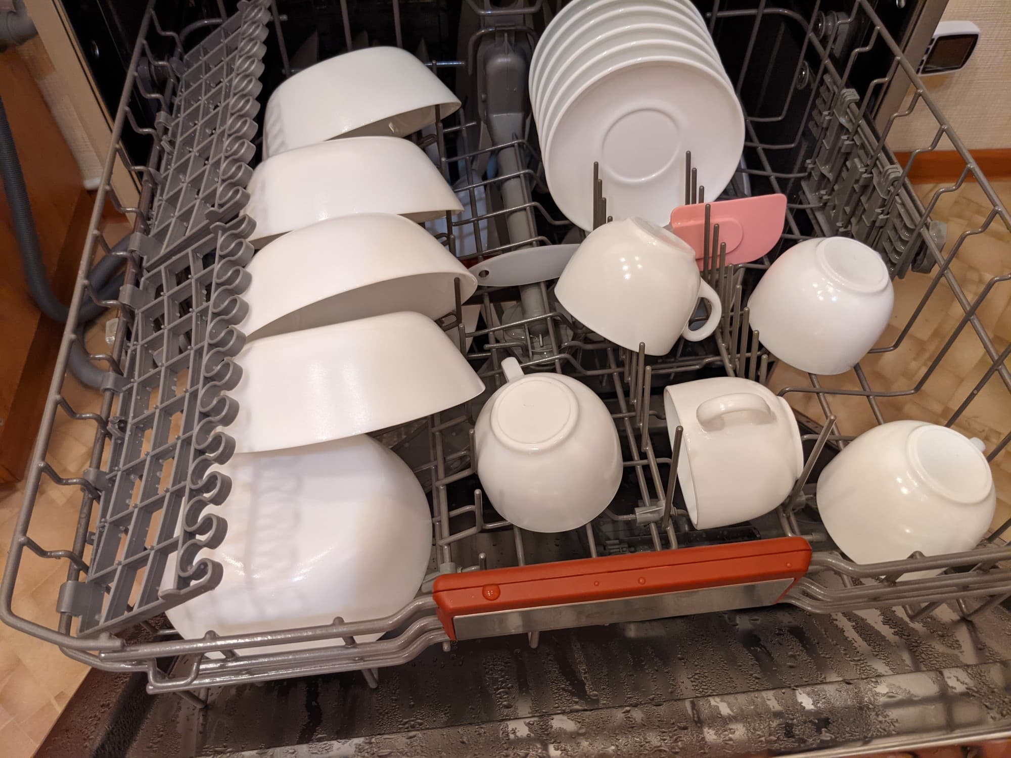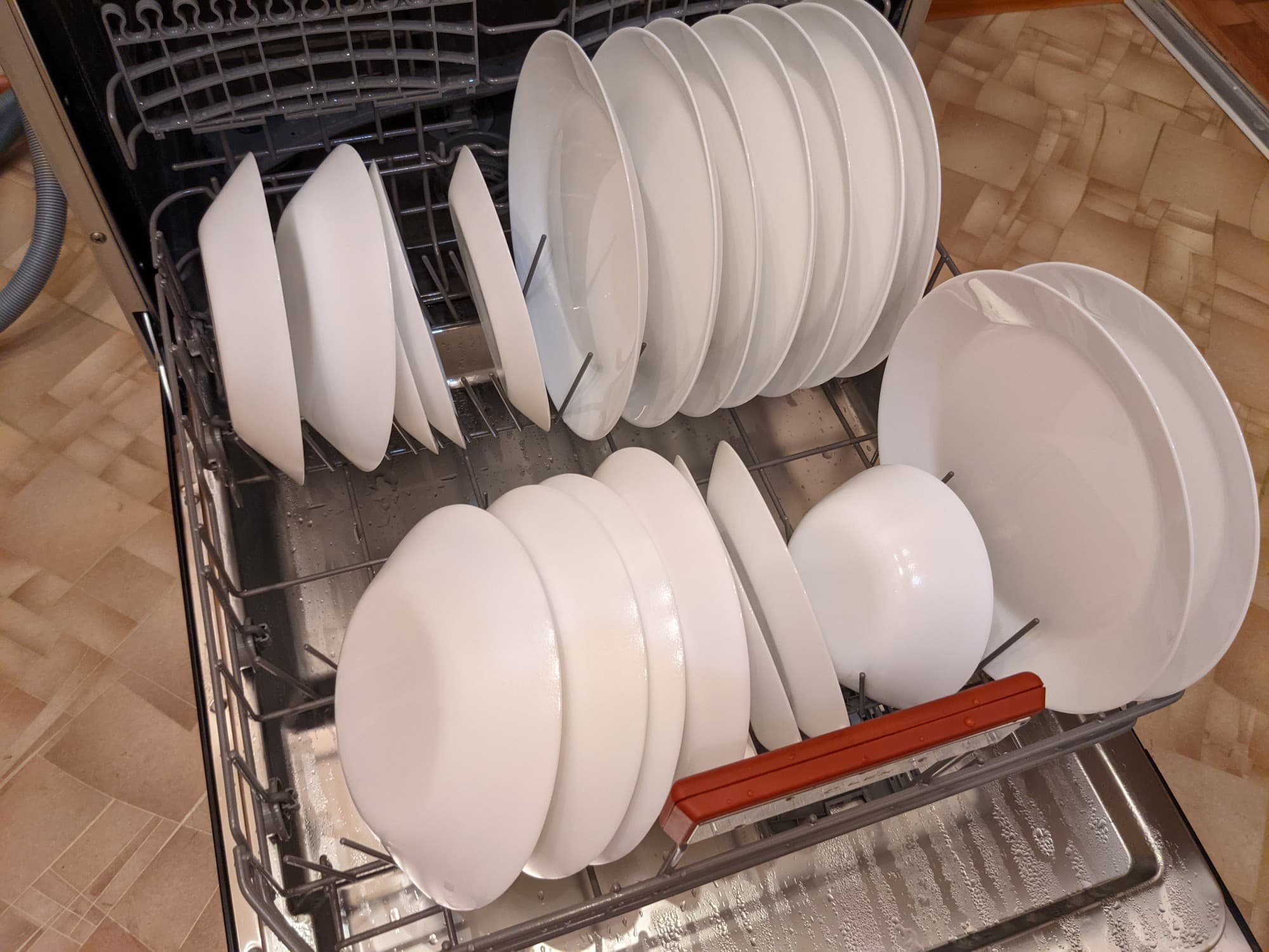 Чуть испортило впечатление состояние столовых приборов в верхней корзине: ложки, вилки и ножи остались чуть жирноватыми на ощупь. Тем не менее, мы считаем тест с экстремальным загрязнением пройденным: с большим количеством остатков пищи при использовании стандартной программы посудомойка справилась почти идеально.