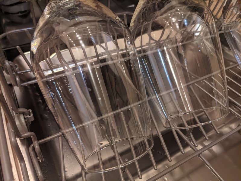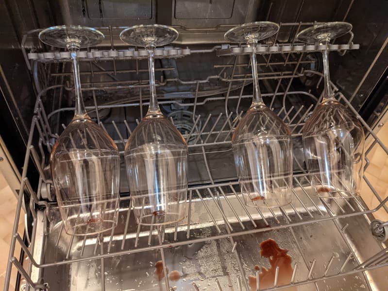 По окончании программы мы убедились, что бокалы отмыты идеально, следов загрязнений и разводов на их стенках нет.