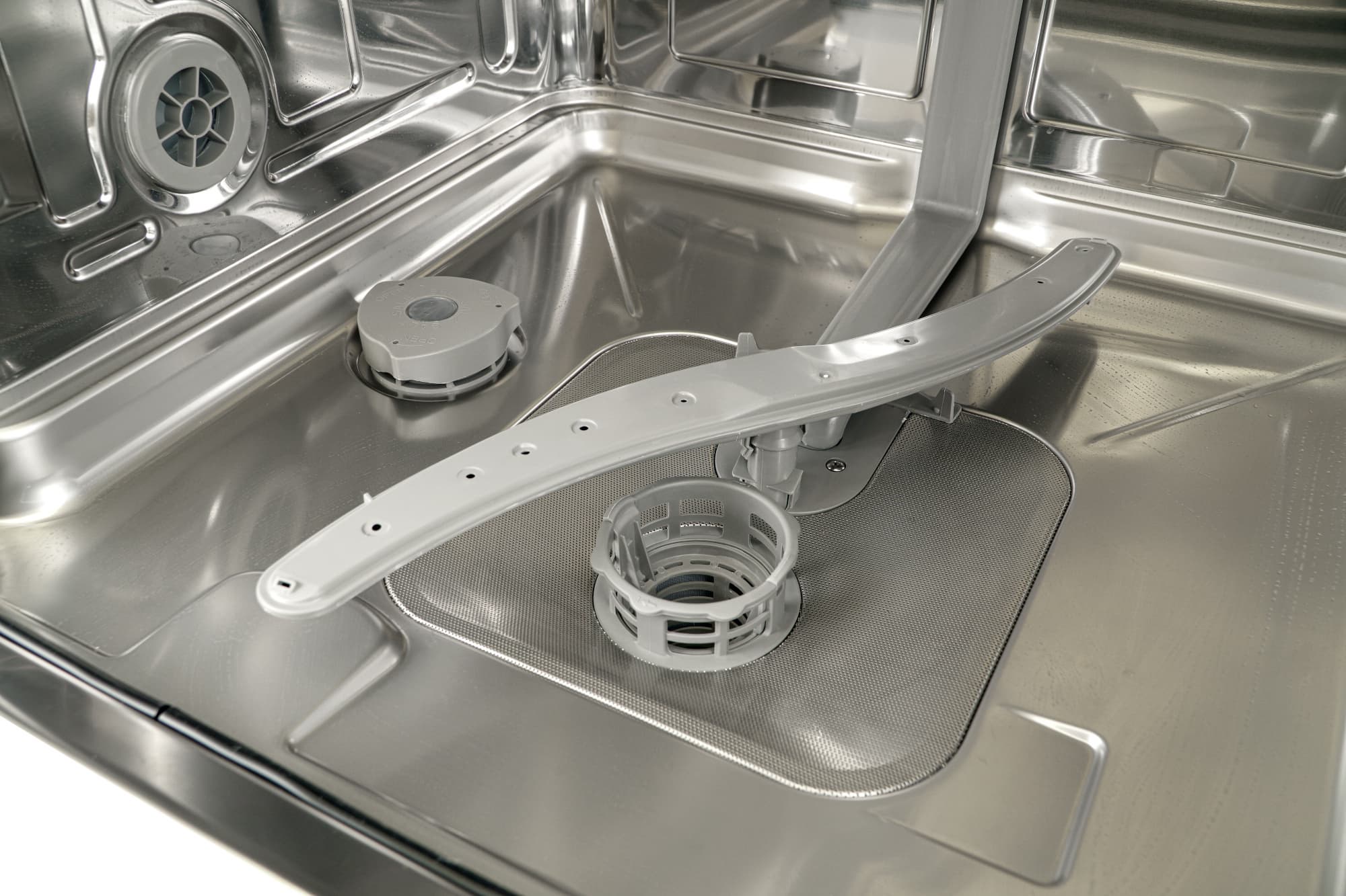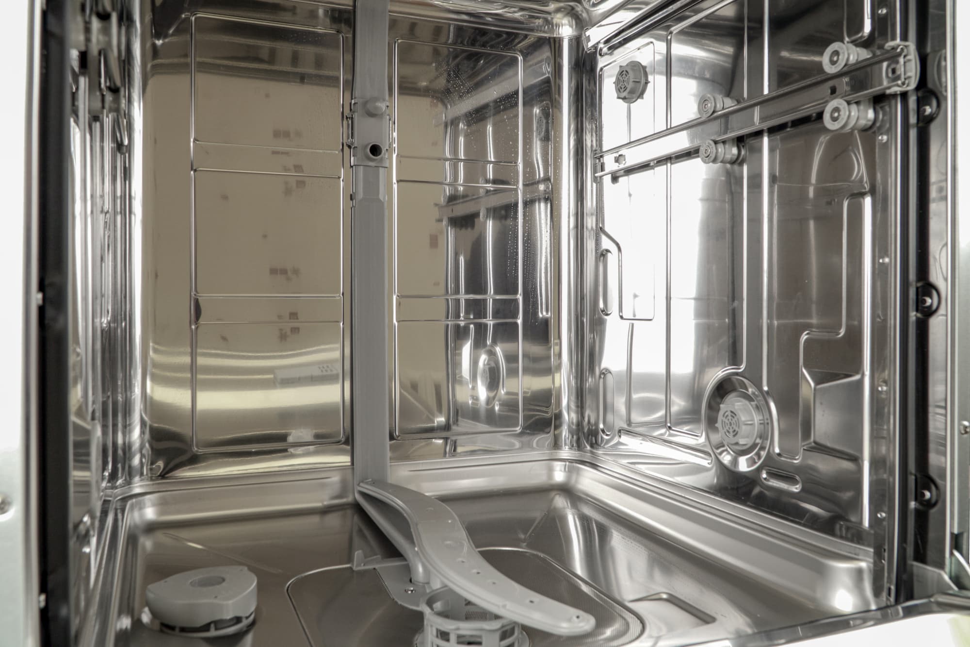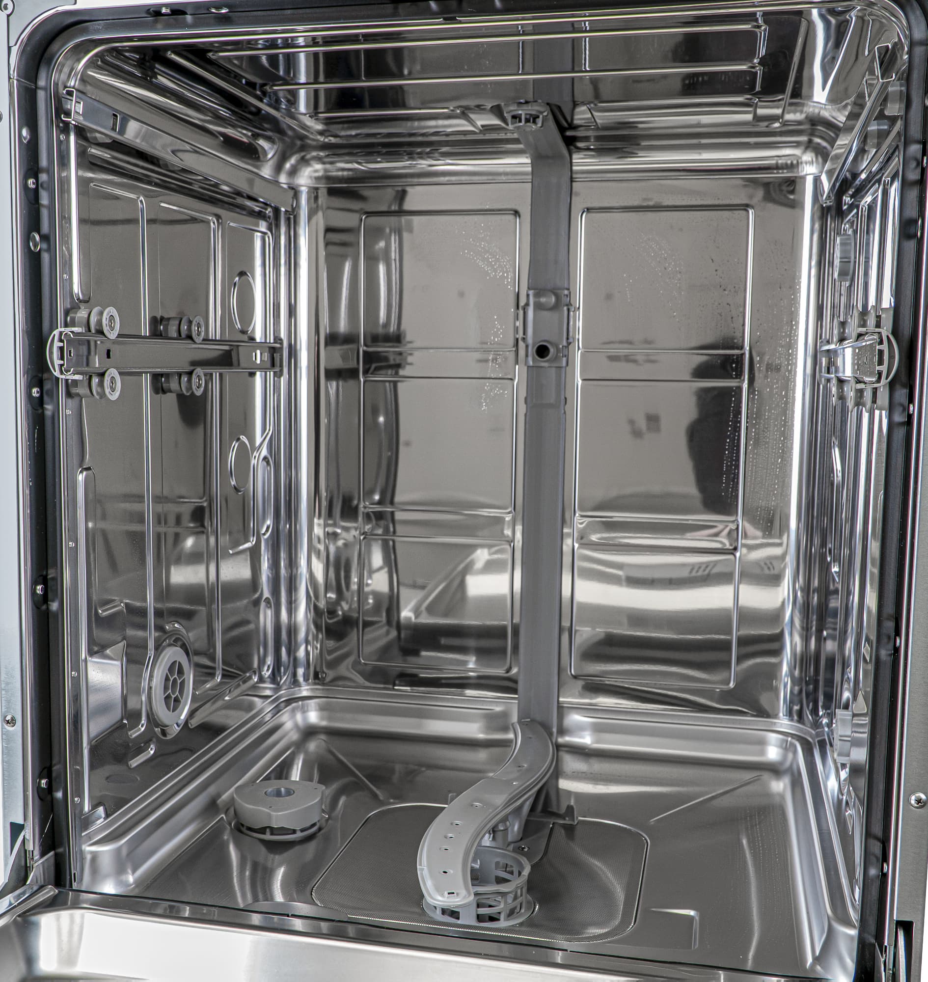Импеллеры, которые подают воду на посуду, слегка изогнуты. В их конструкции состоит, пожалуй, единственное внешнее отличие от аналогичной узкой машины: в Lex PM 4573 разбрызгиватели были прямыми.