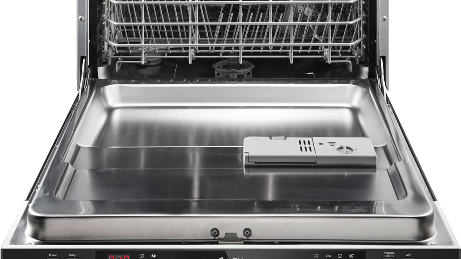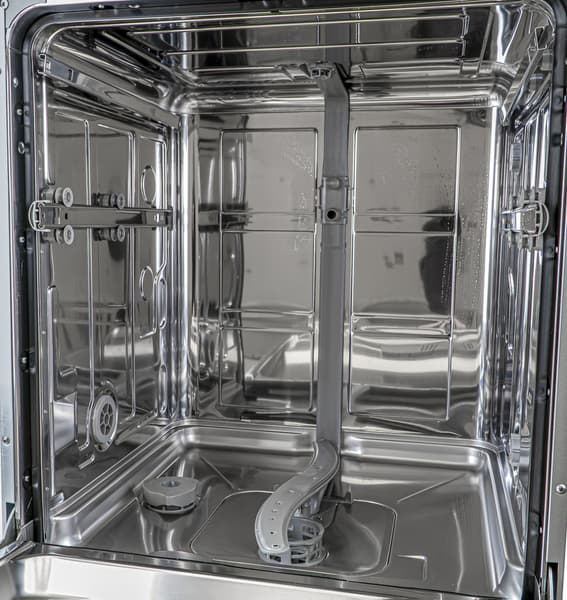 Металл, из которого сделана дверца посудомойки, тонкий, поэтому под нагрузкой она может слегка изогнуться. Но ее жесткость должна усилиться навеской декоративного фасада, поэтому мы не отметили это как недостаток.