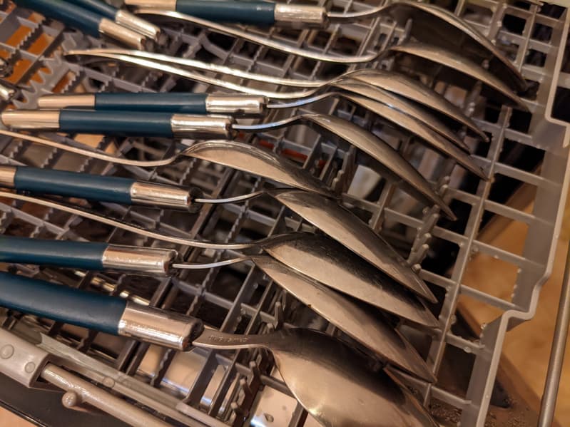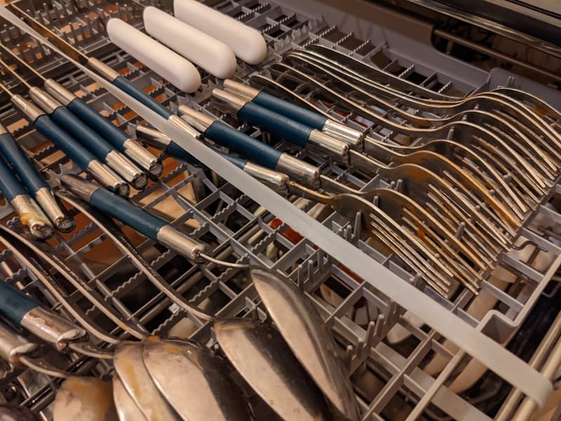 Все столовые приборы в нижней корзине отмылись идеально, следов загрязнений мы не обнаружили ни на одном из них.