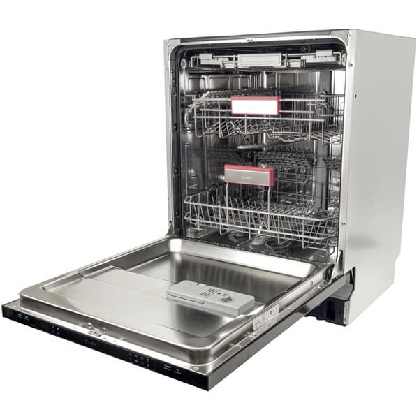 Во время работы машина проецирует на пол рядом с передней панелью хорошо заметную красную точку. И это правильно — ведь опция «красный луч» кажется нам обязательной для полновстраиваемых посудомоек.