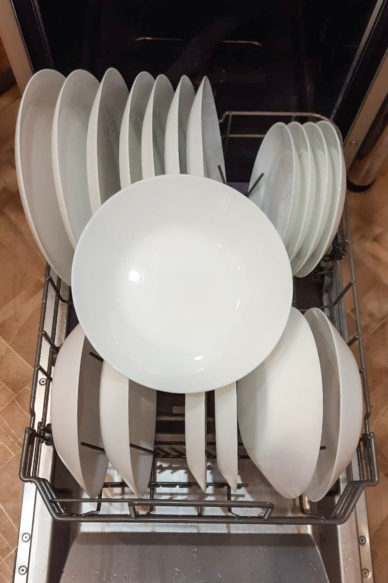 Стоит отметить, что качество сушки и мытья даже без дополнительного времени у этой модели весьма достойное. Посуду по окончании цикла мы всегда доставали чистую, скрипящую и лишь иногда с минимальным количеством влаги. На этапе сушки, минут за 15-20 минут до завершения цикла дверца машины автоматически открывается, что способствует удалению конденсата внутри бака и улучшает качество высушивания посуды.