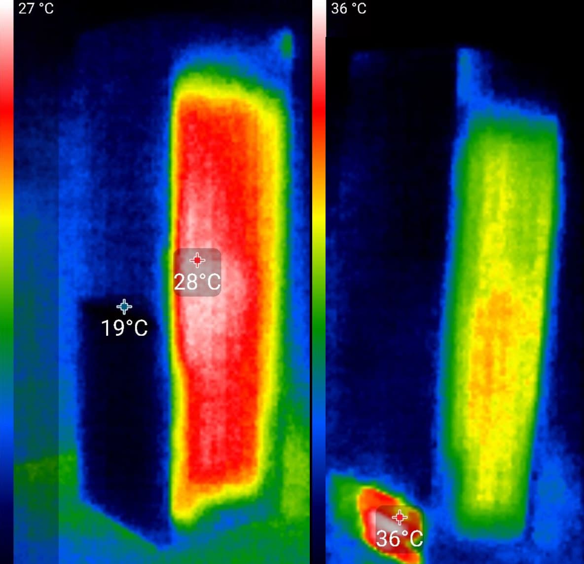 Корпус и дверцы холодильника при работе компрессора греются не слишком сильно: теплее всего оказалась правая стенка.
