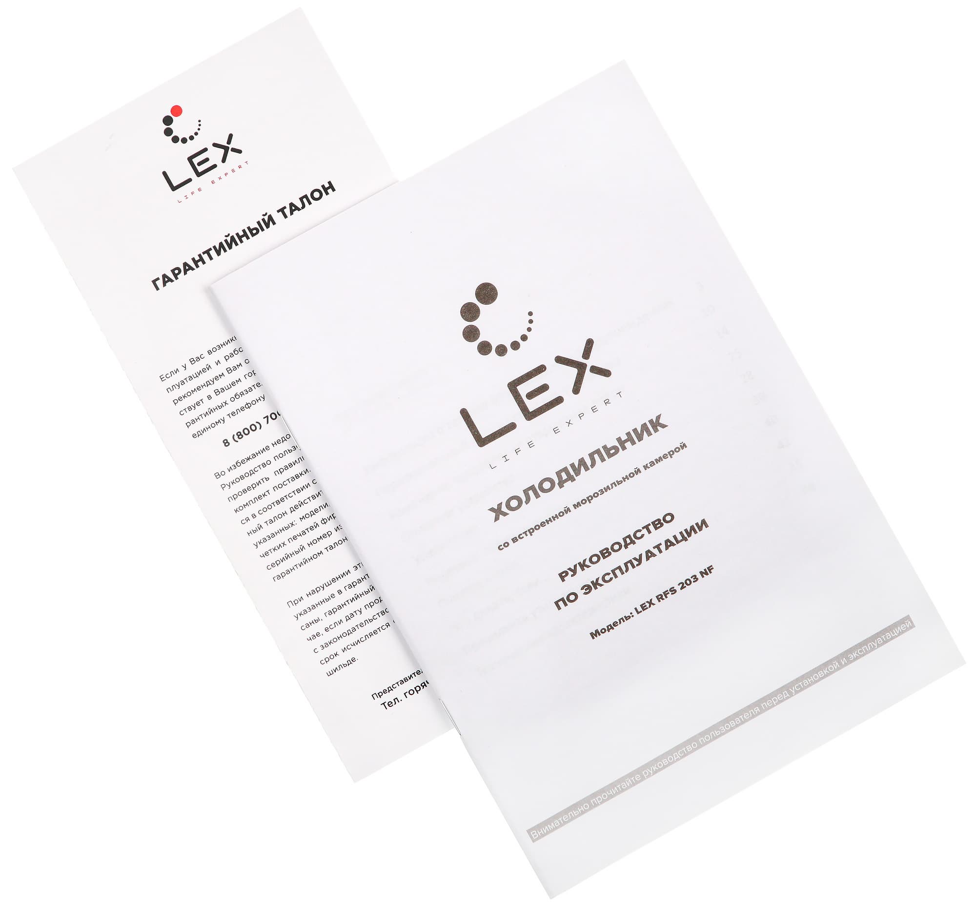 Руководство по эксплуатации Lex RFS 203 NF — это брошюра формата A5 из матовой плотной бумаги с хорошим качеством шрифтов и сносным — рисунков (некоторые линии размазаны, но на возможность понять изображения это не влияет). Количество изображений и таблиц достаточно для того, чтобы вопросов по эксплуатации после внимательного прочтения не возникло.