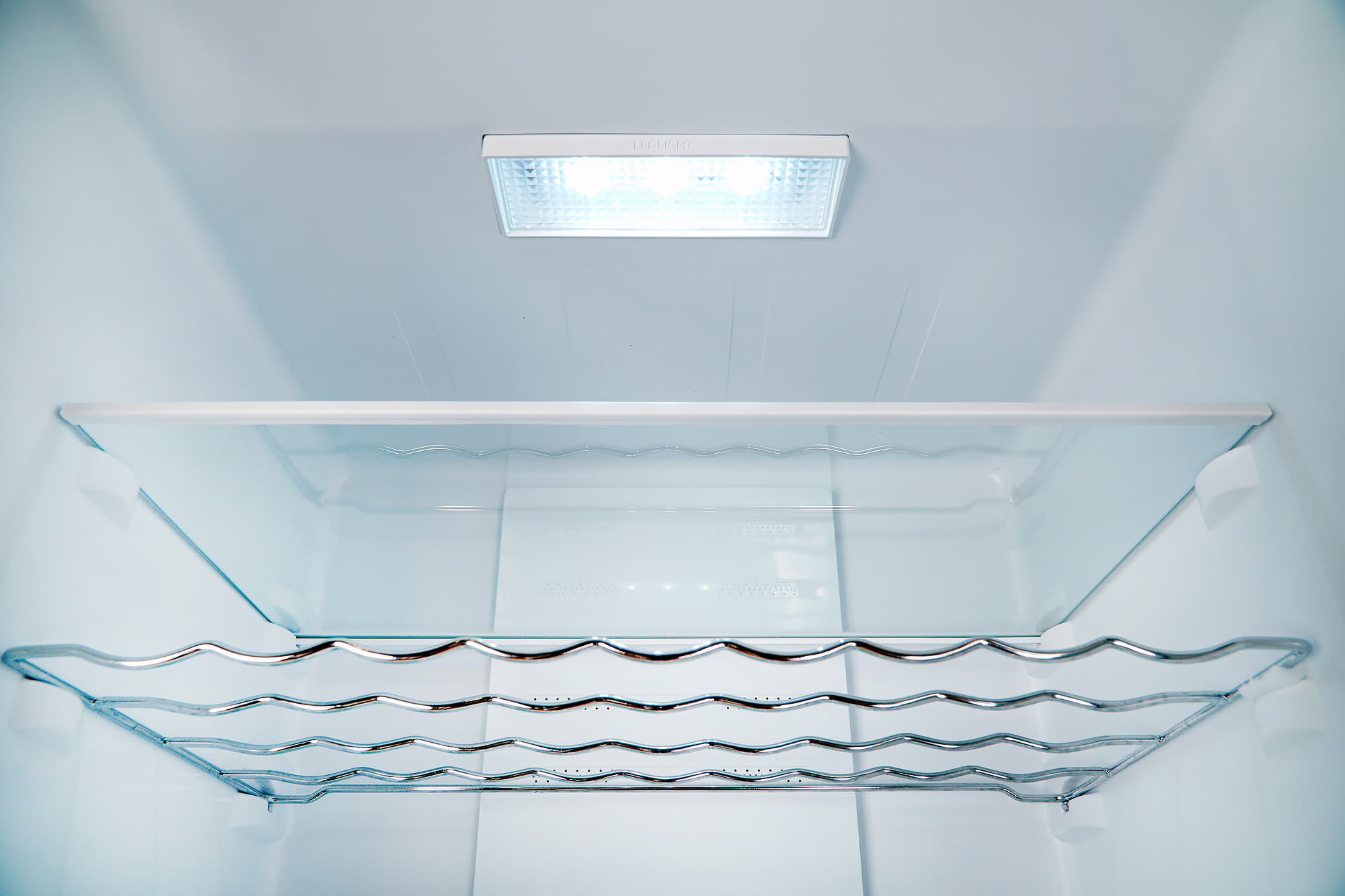 Подсветка холодильного отделения светодиодная, из трех ярких LED-элементов с холодным светом, закрытых рассеивающим свет прозрачным пластиком. Освещенность мы оценили как хорошую.