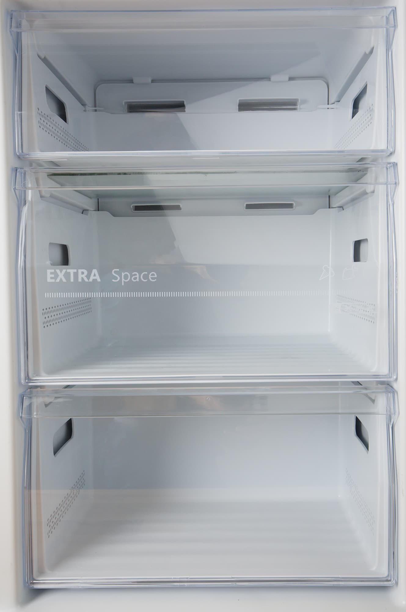 Ящик для овощей и фруктов ничем не разделен. Управления микроклиматом фреш-зоны у этой модели нет.