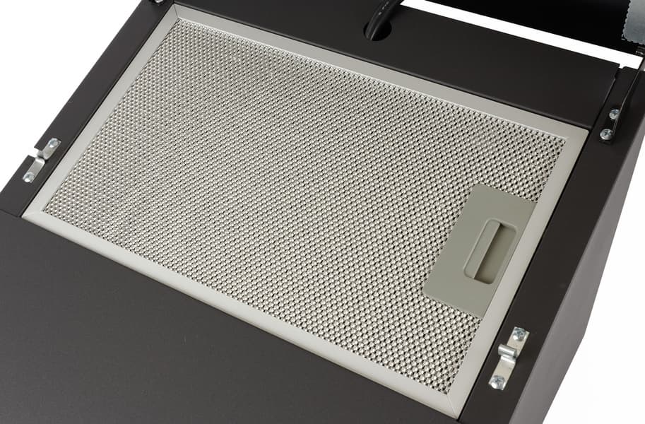 У него обычная для такого рода техники конструкция: тонкая металлическая сетка на алюминиевой раме с пластиковой защелкой. Он задерживает брызги жира, не позволяя им оседать на внутренних поверхностях корпуса и вентиляторе.