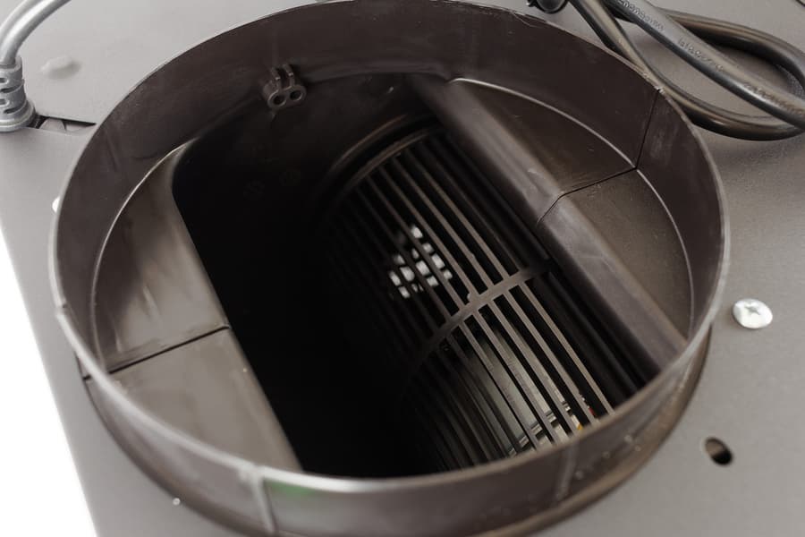 За решеткой фильтра располагается вентилятор в цилиндрическом корпусе из пластика. При использовании Rio G 600 как отдельно стоящей вытяжки, без подключения к вытяжной вентиляции, на выходное отверстие устанавливается сменный угольный фильтр, который поглощает запахи кухни (при необходимости его можно купить отдельно).