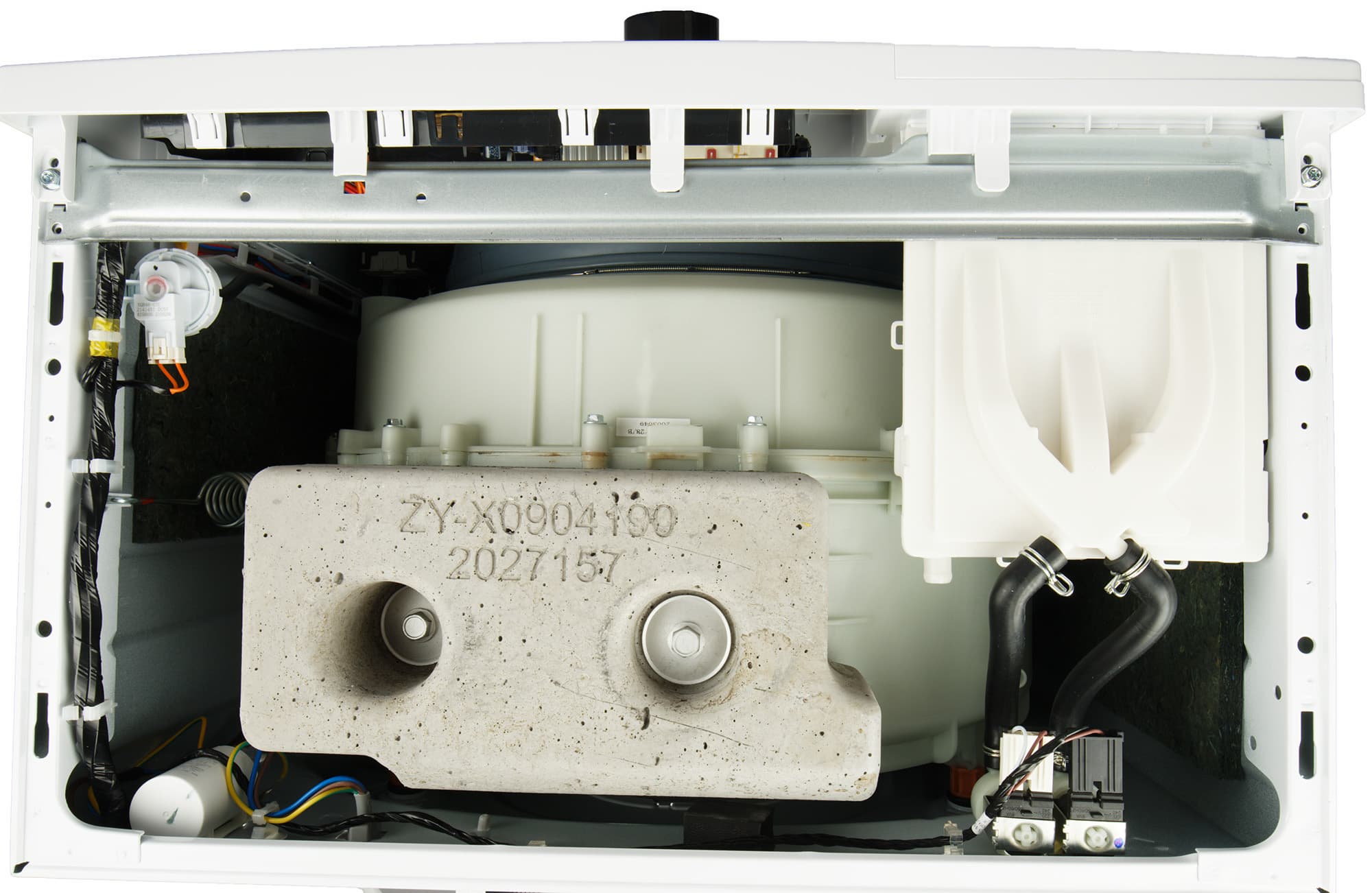 Максимальная потребляемая машиной мощность, зафиксированная в ходе практических тестов, составила 1608 Вт. В режиме ожидания стиральная машина потребляет менее 0,1 Вт.