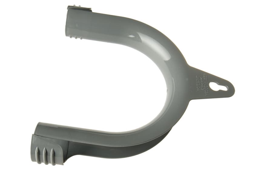 Стандартный у этой модели и кронштейн для крепления сливного шланга: две защелки, плавный изгиб и отверстие для винта.