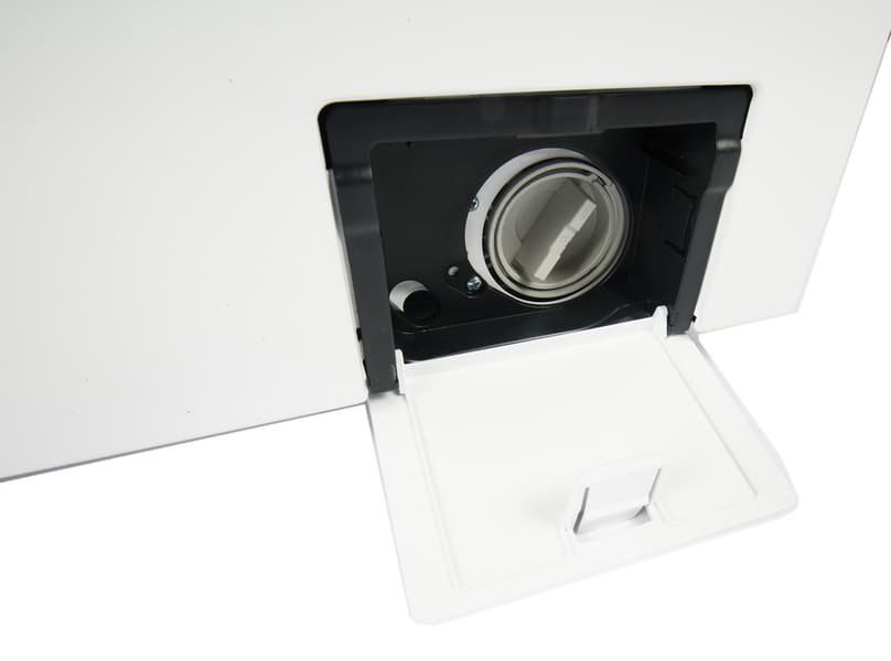Петли люка у этой модели металлические, их конструкция позволяет распахнуть дверцу чуть больше, чем на 180°. Из металла сделан и фиксатор замка, а ответная часть защелки — пластиковая. Переставить крышку на правостороннее открывание в этой модели нет возможности.