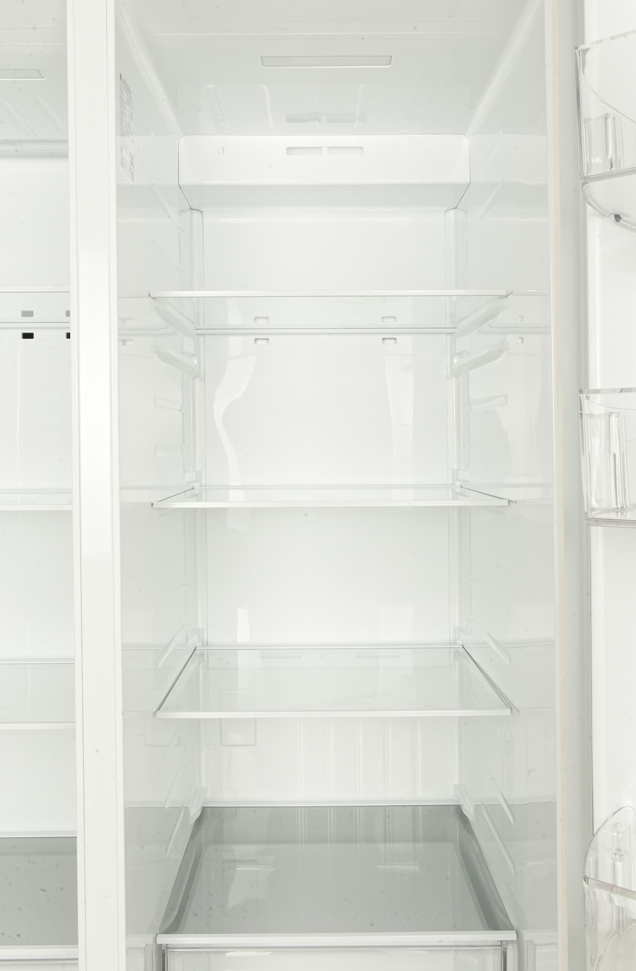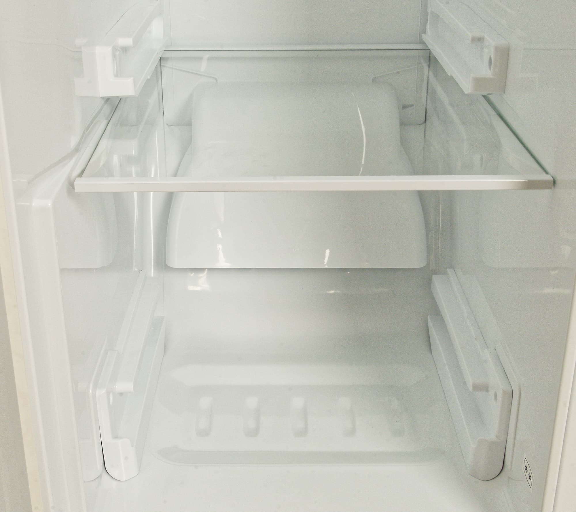 У полок морозилки фиксированное размещение: в отличие от симметричных полок холодильника их нельзя переставить выше или ниже.