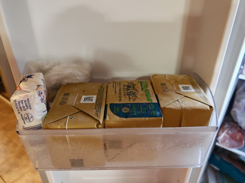 Да и в морозилке дверные полки немаленькие: это, например, три пачки сливочного масла по 0,5 кг каждая.