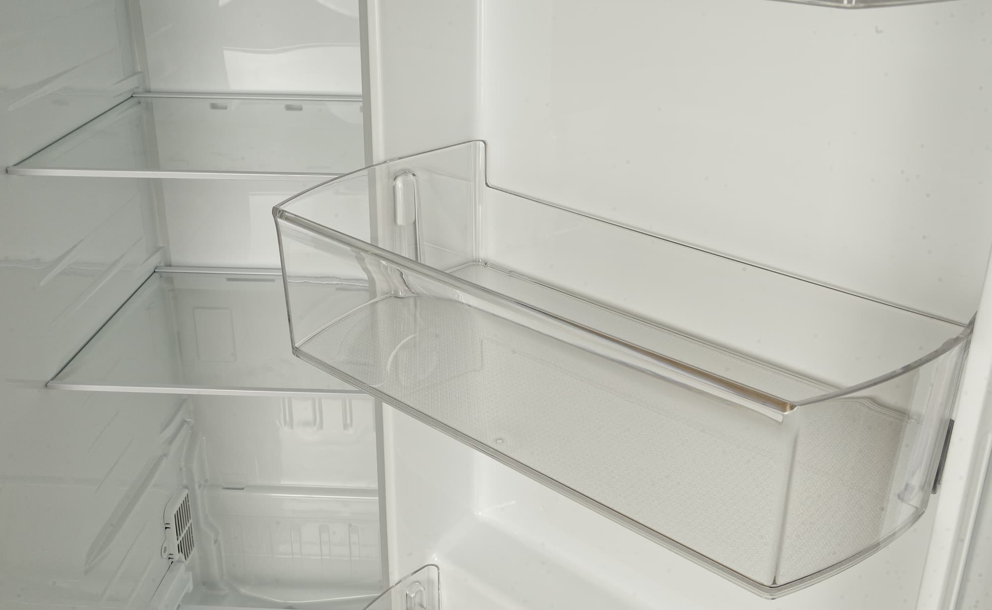 Наиболее ровный микроклимат — в ящиках зоны свежести. Перепад температуры и влажности здесь почти незаметен, что позволяет сохранять зелень, фрукты и овощи свежими.