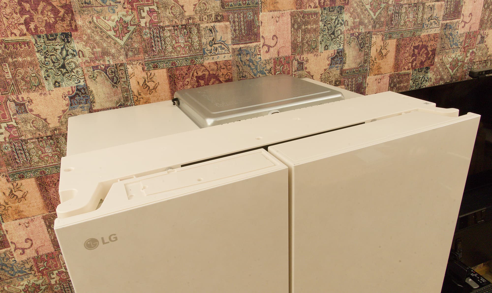 Приложив смартфон к этому месту и запустив программу LG ThinQ, можно провести быструю внутреннюю диагностику прибора, результаты которой, по идее, существенно облегчат специалистам сервисного центра поиск неисправностей.