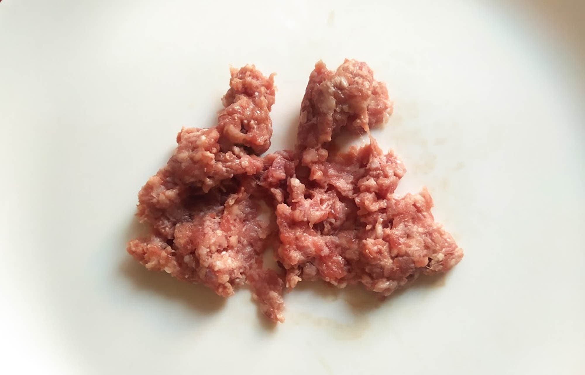 По окончании программы мы подождали пять минут, чтобы температура внутри куска стабилизировалась, и открыли прибор. Наш мясной ком не потек и не потерял форму, мы даже подумали, что фарш не разморозился. Но мы ошиблись: после удаления оттаявших частей перед нами оказался маленький твердый кусочек на 100 г. Отправили его дальше размораживаться, на этот раз прибор отмерил 1 минуту 48 секунд.