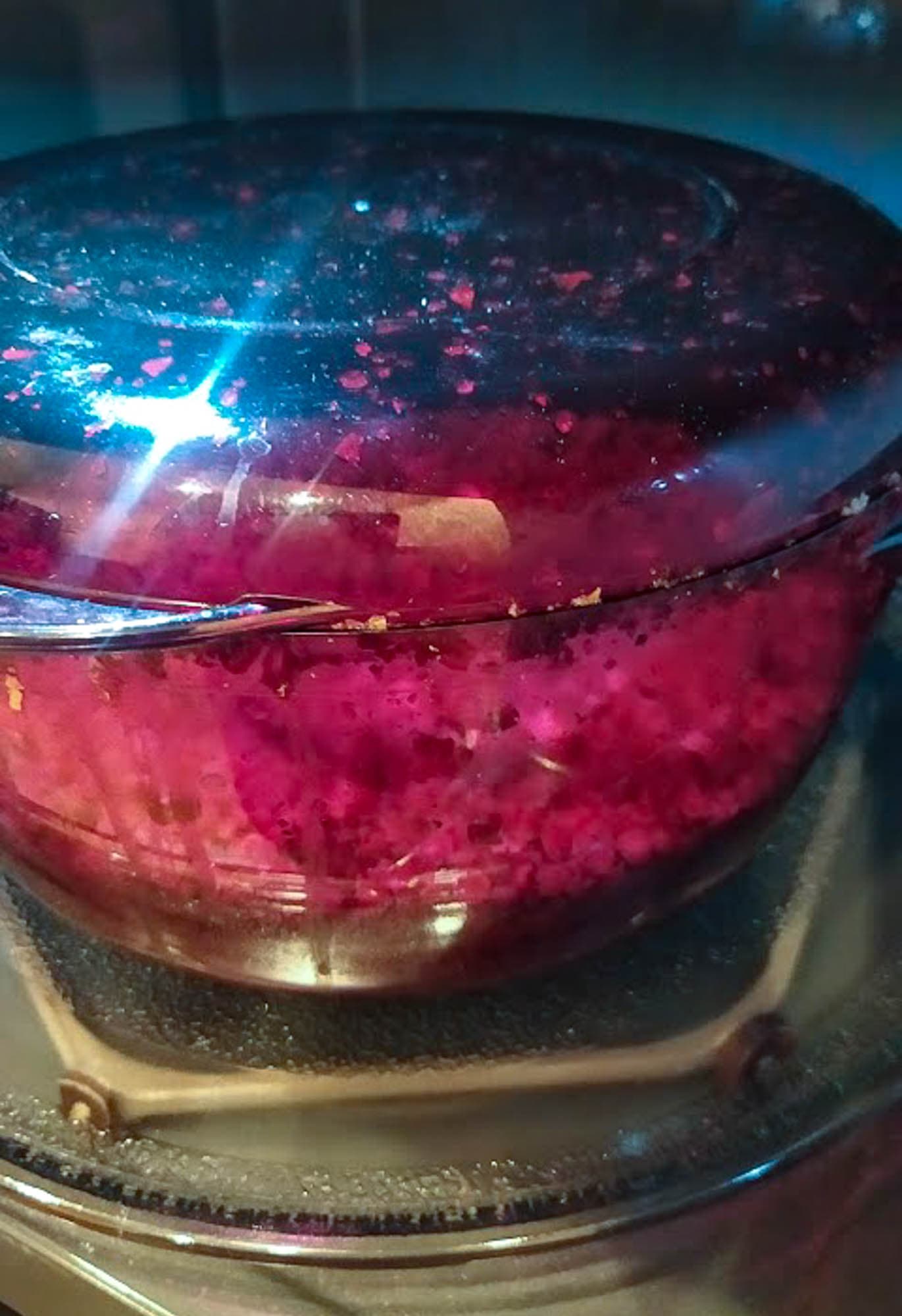 Все это дело мы залили водой: предлагалось взять две чашки, но мы налили две с половиной. Программа 2-1 предполагает 25 минут работы. Поехали! Главное не забыть несколько раз перемешать содержимое миски, как велит инструкция.