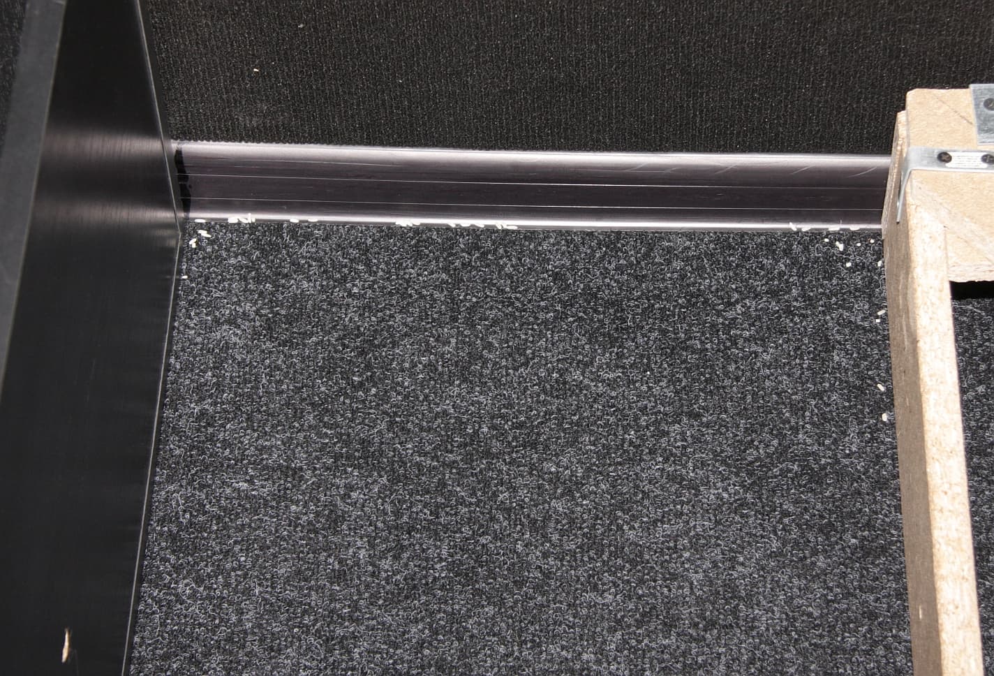 Сдвиг бампера вызывает срабатывание механических датчиков препятствий. Расстояние от пола до нижней точки бампера равно 16 мм, значит, на ступеньку такой высоты робот потенциально может заехать. Для защиты мебели спереди на бампер в нижней его части наклеена полоса из резины средней жесткости. Выше на бампере за окошком из тонированного пластика находятся ИК-датчики обнаружения препятствий, базовой станции и, возможно, приемник команд с пульта ДУ. ИК-приемник также расположен, видимо, под верхней панелью в передней части.